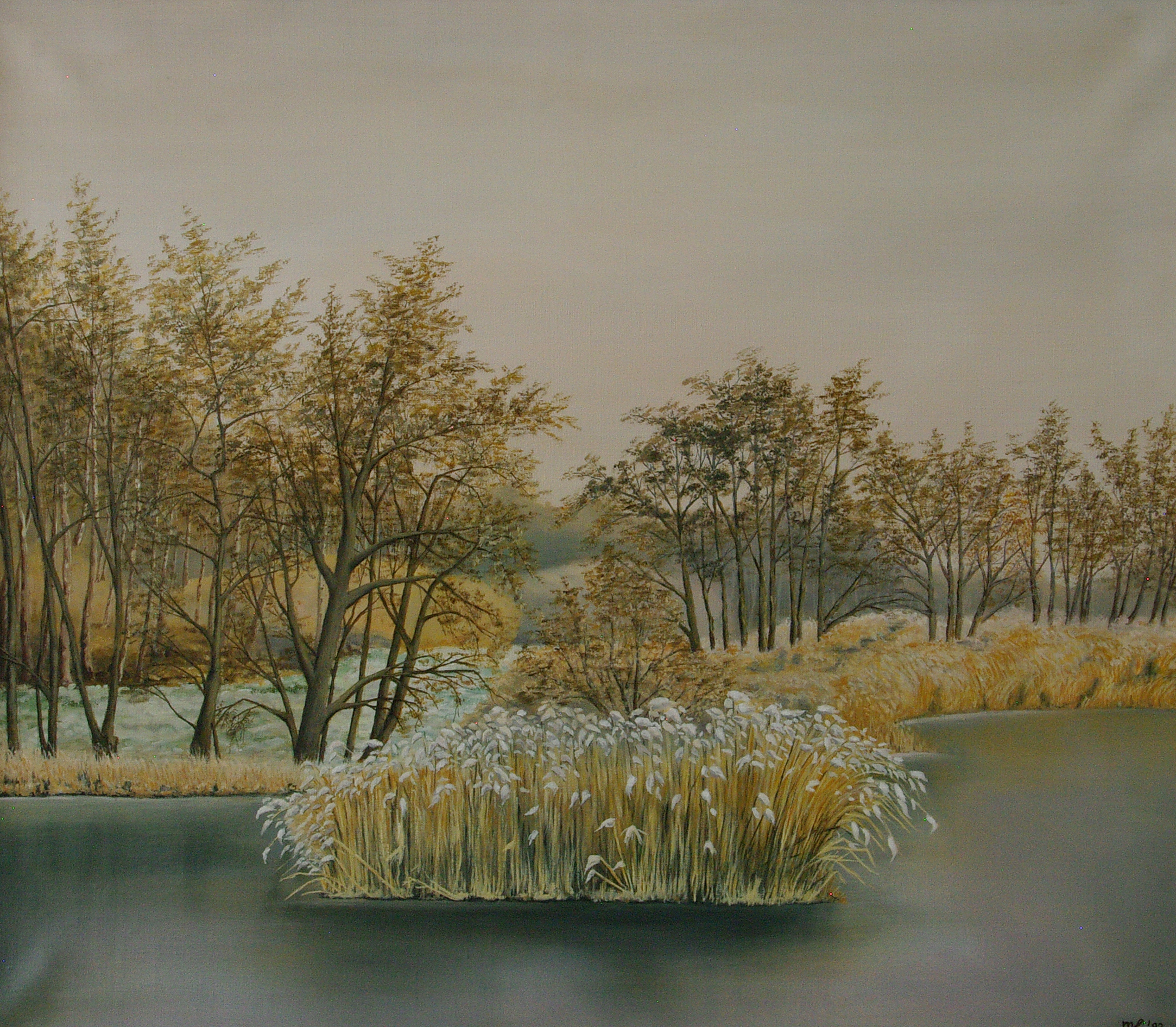 Rietkraag in het water, incl. lijst