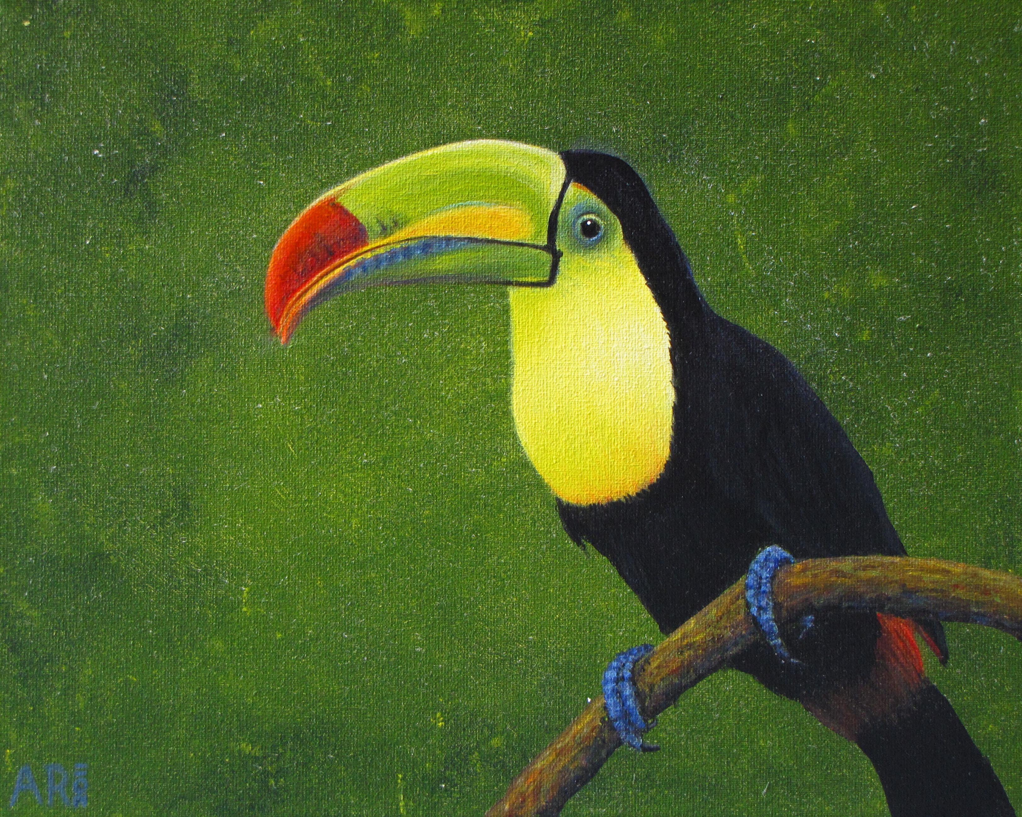 Schilderij Geel Zwart Acryl Vogel Yellow Groen Wildlife Dieren Art Painting Green Acrylic Black Bird Animal Toekan Toucan