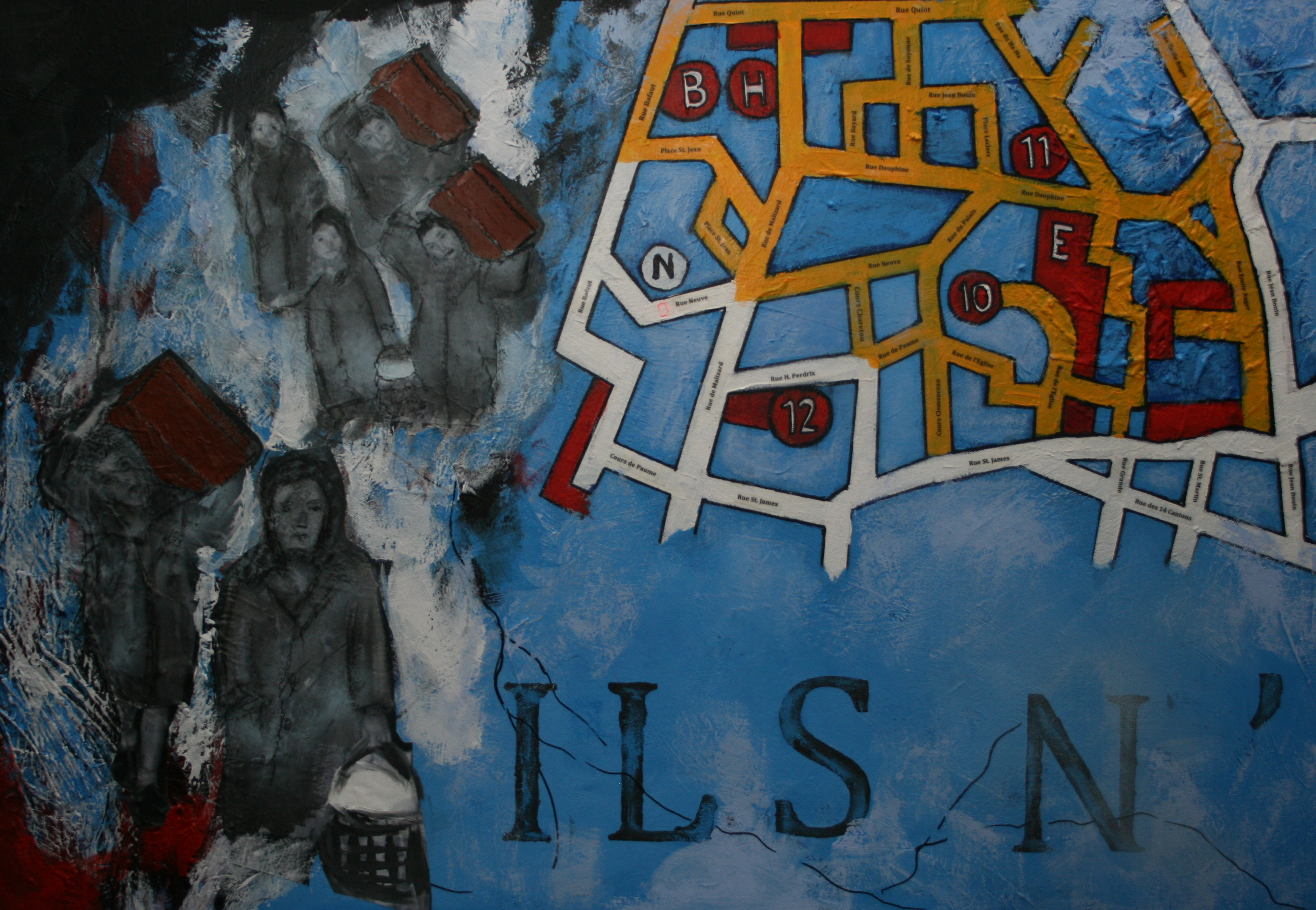 Geel Blauw Yellow Blue Plattegrond Map Vluchtelingen Straten Streets Refugees