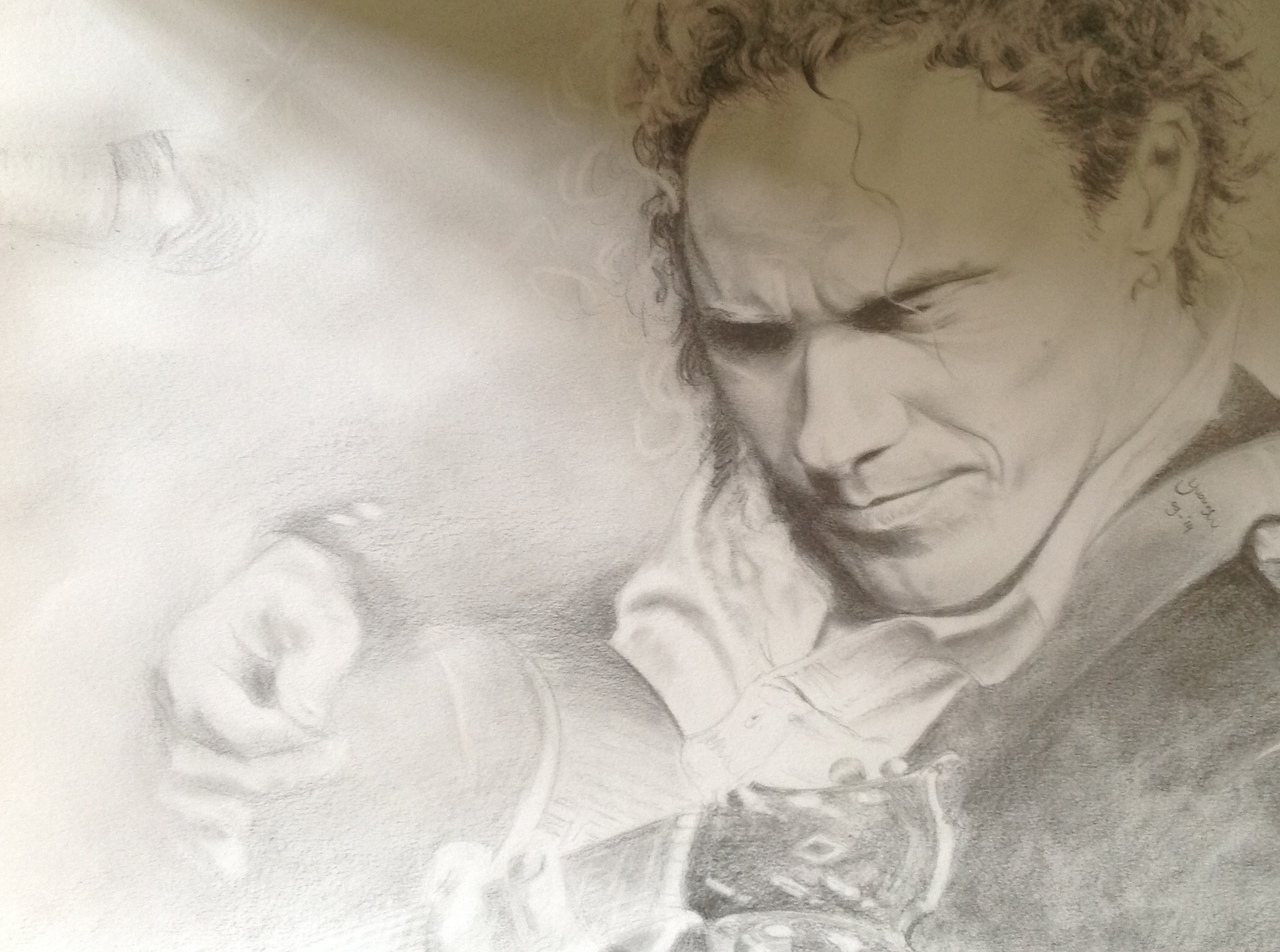 Yvonne (1970), Den Bosch, tekent portretten van foto. Zwart-wit, aquarelpotlood, realistisch of met extra.