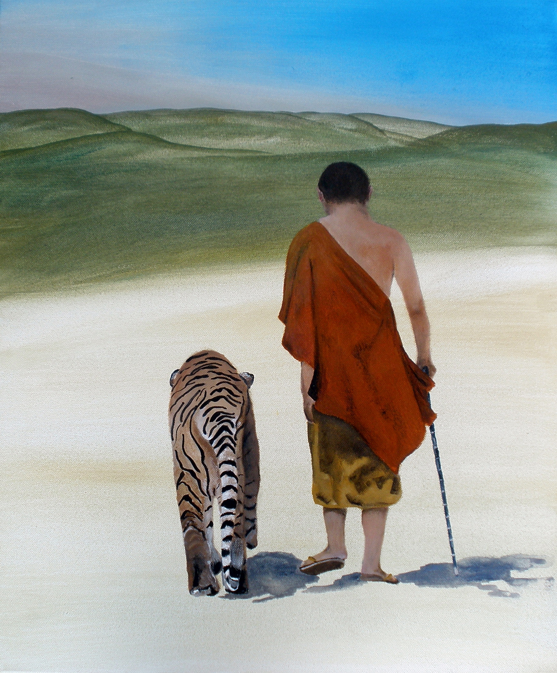 Landschap Liefde Op Religie Samen Tafereel Dag Weg Tijger Tempel Begin Wandeling Ons Monnik Overpeinzing Aanvang
