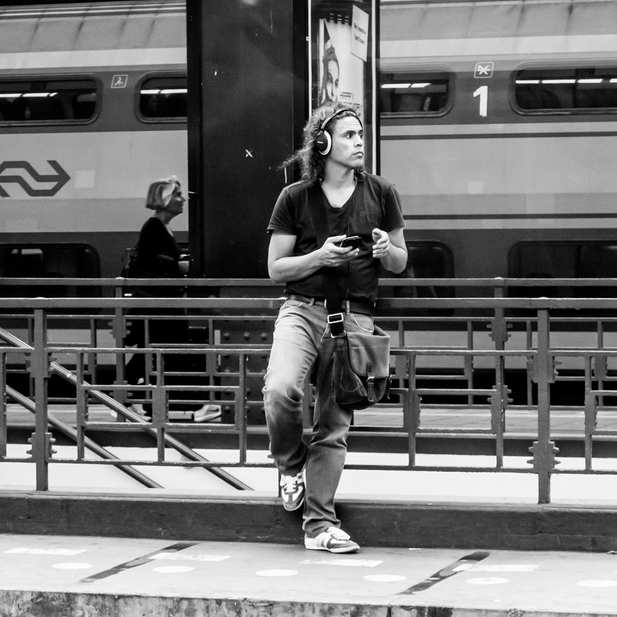 Wachtende mannen, je komt ze overal tegen. Zoals hier in Amsterdam