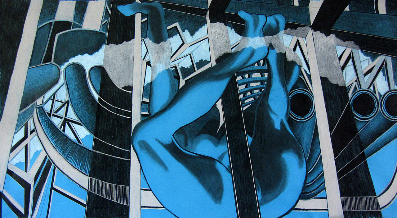 Drawing is a discipline in which ‘looking outside’ and ‘looking and moving within the frame of the paper’ is very important. Sources of inspiration are urban and industrial landscapes and shapes of the human body. Tom’s work consists of countless shades of black but he also uses colour in an exciting way. The artworks change as the daylight changes. Observations and impressions from spending time outdoors inspire his artwork. His skilled drawings may develop into new drawings as well as paintings. In his paintings he combines colour, patches and blots with lines to create several spaces.