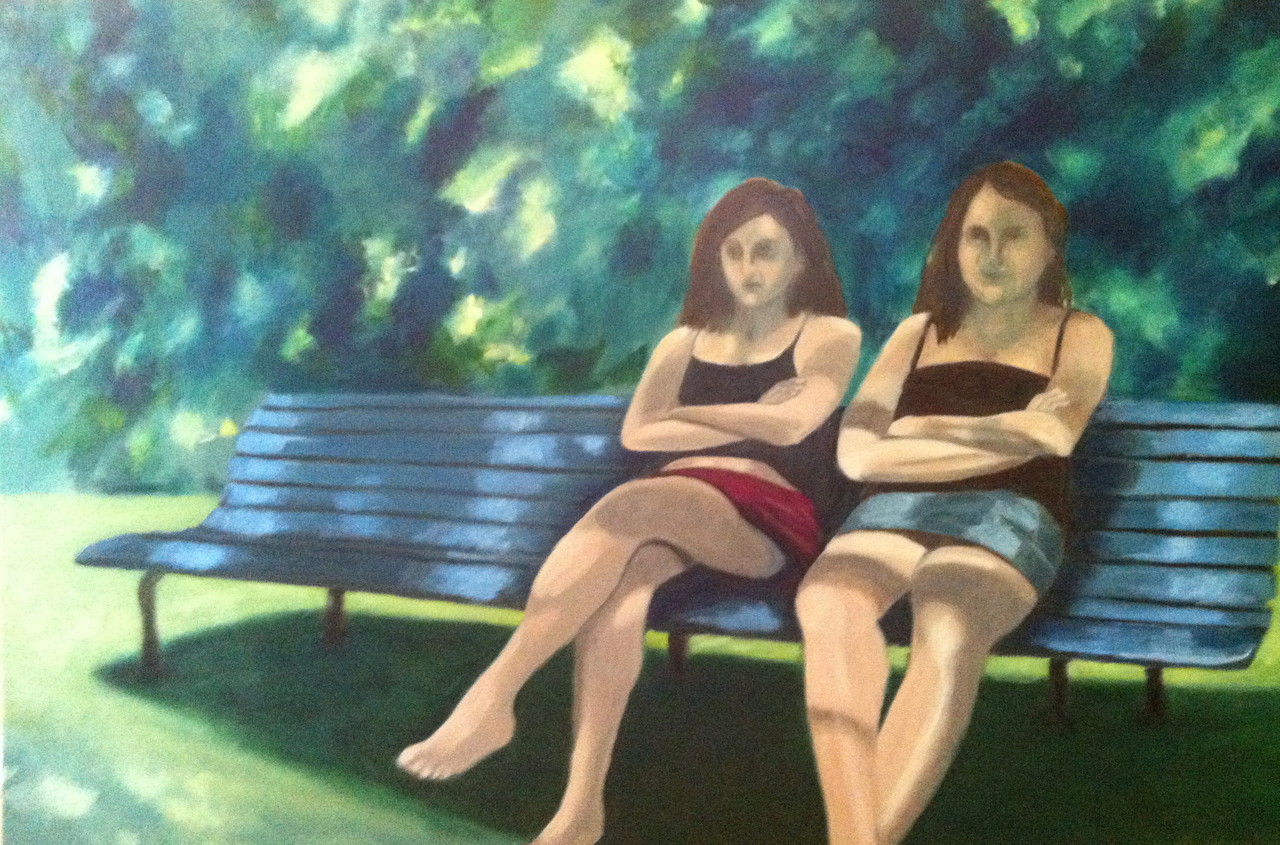 Blauw Groen Blue Oil Olie Green Vriendinnen Friends Bank Park Bench Parkbank Parkbench