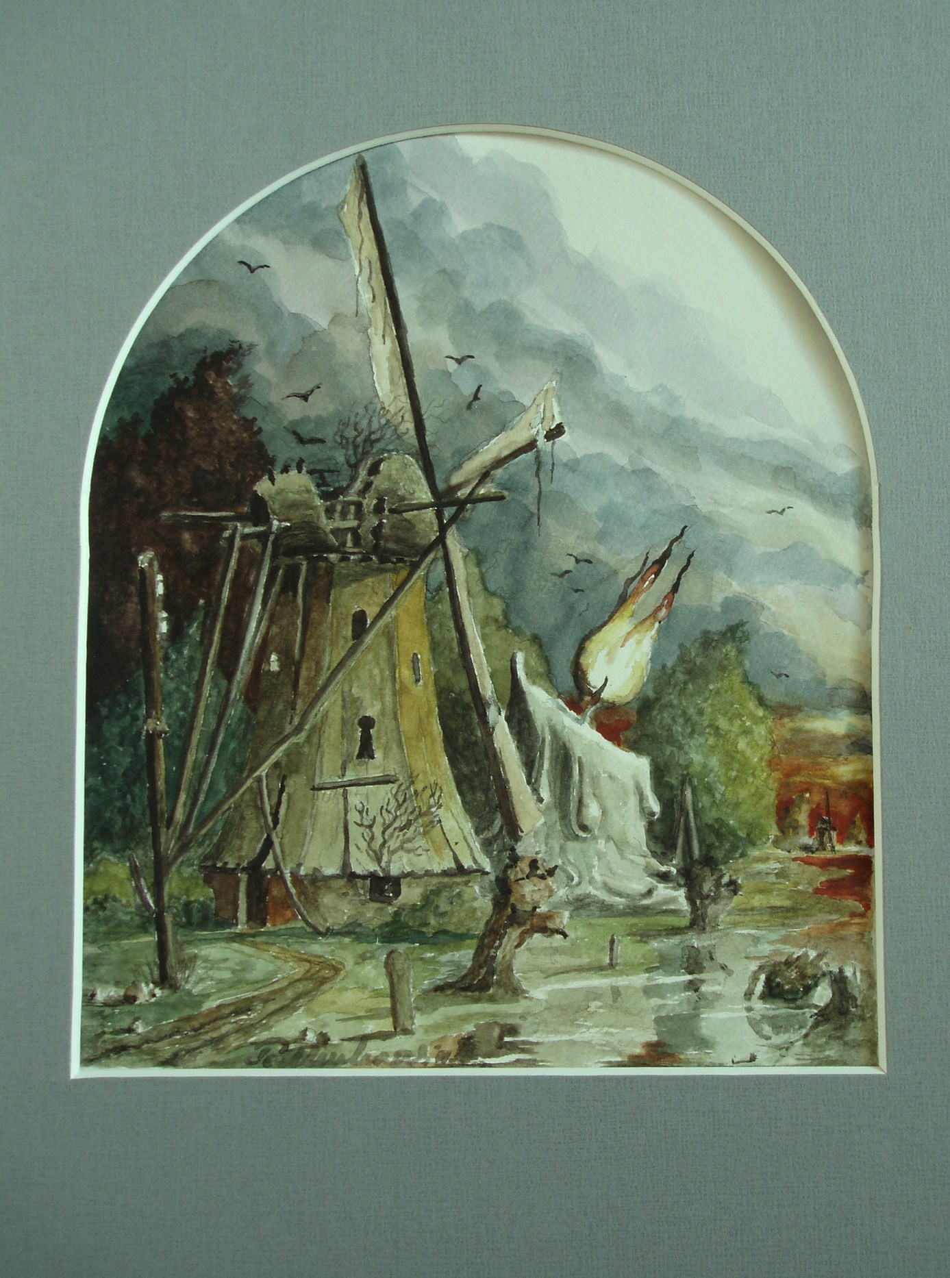 Landschap Romantiek Aquarel Realisme Fantasie Molen Avond Kaars