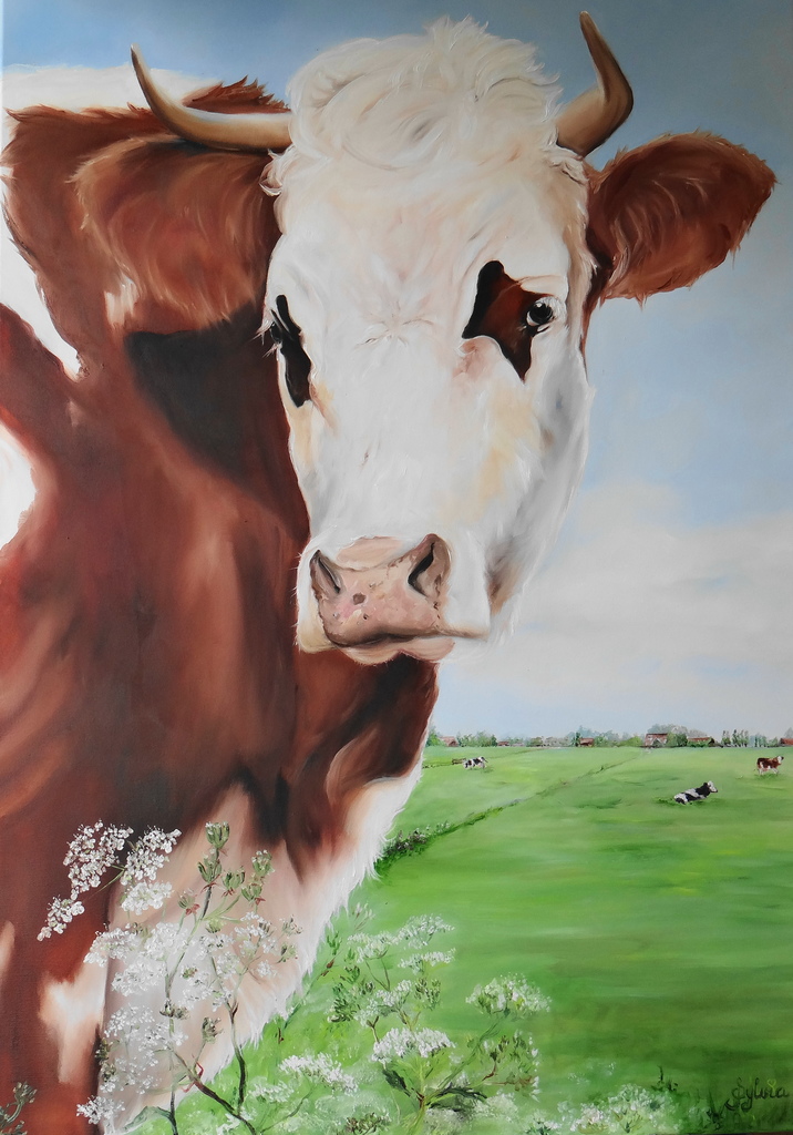 Hart Koe Vache Natuur Cow Boerderij Sylvia Groene Dierenliefde Koeienportret Heeren Schilderenmetpassie