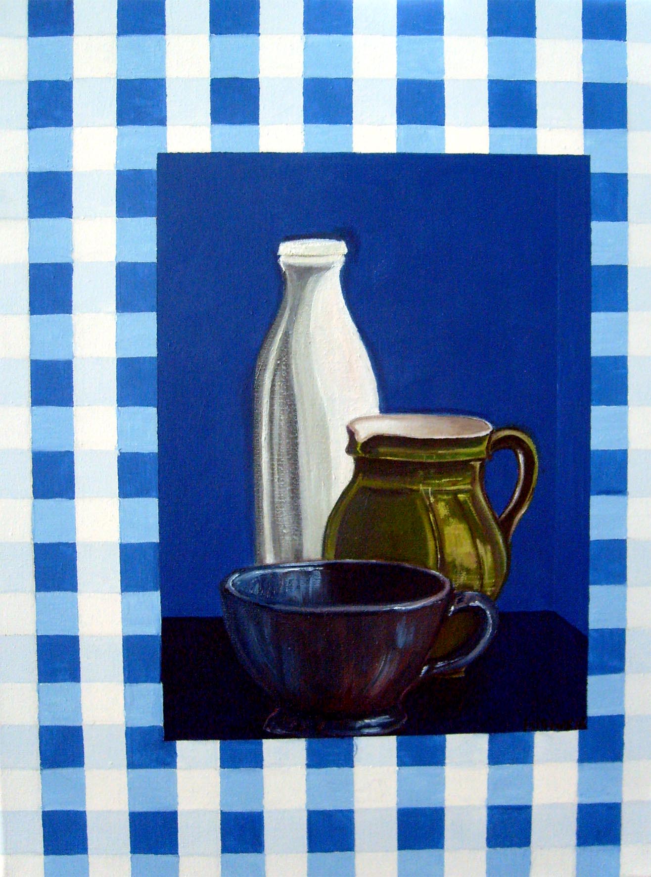 Schilderij Realistisch Dutch Painting Stilleven Cup Holland Delftsblauw Melkfles Realistic Stilllife Milkbottle