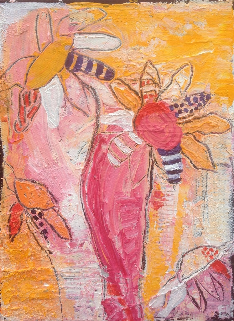 Mijn naam is Ellen Kessels[1962] Ik ben autodidact. Al jaren ben ik bezig met schilderen,dit doe ik op bijna alles.Doek karton papier hout porselein meubels. Ik werk het liefst met acrylverf waar ik dan vaak wat zand, papier, inkt of wasco bij gebruik. Mijn werk is uitbundig, zonnig, vrolijk en kleurrijk. Het zijn niet realistische vogels vissen en kinderen die de boventoon voeren.
