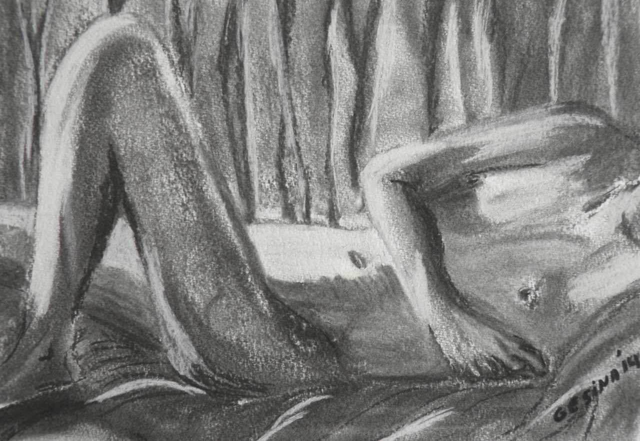 Man Gea Gesina Vermeer Zwart Wit Houtskool Naakt