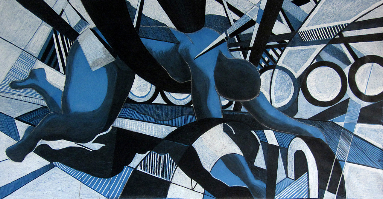 Drawing is a discipline in which ‘looking outside’ and ‘looking and moving within the frame of the paper’ is very important. Sources of inspiration are urban and industrial landscapes and shapes of the human body. Tom’s work consists of countless shades of black but he also uses colour in an exciting way. The artworks change as the daylight changes. Observations and impressions from spending time outdoors inspire his artwork. His skilled drawings may develop into new drawings as well as paintings. In his paintings he combines colour, patches and blots with lines to create several spaces.