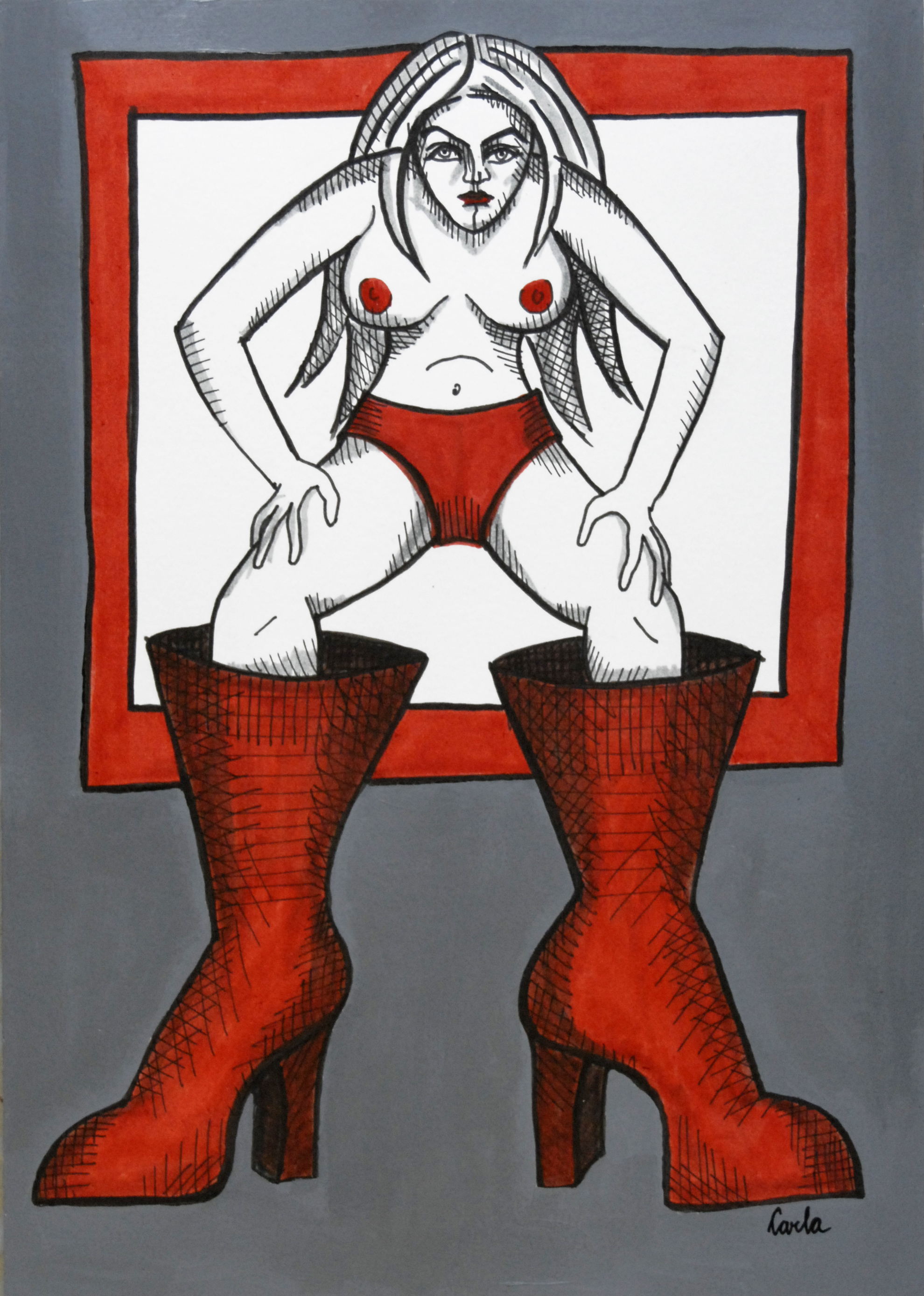 Wit Grijs Rood Zwart Vrouw Naakt Woman Nude Red Black Female White Shoes Schoen Schoenen Laarzen Laars Raam Lijnen Lijn Boot Window Grey Boots Shoe