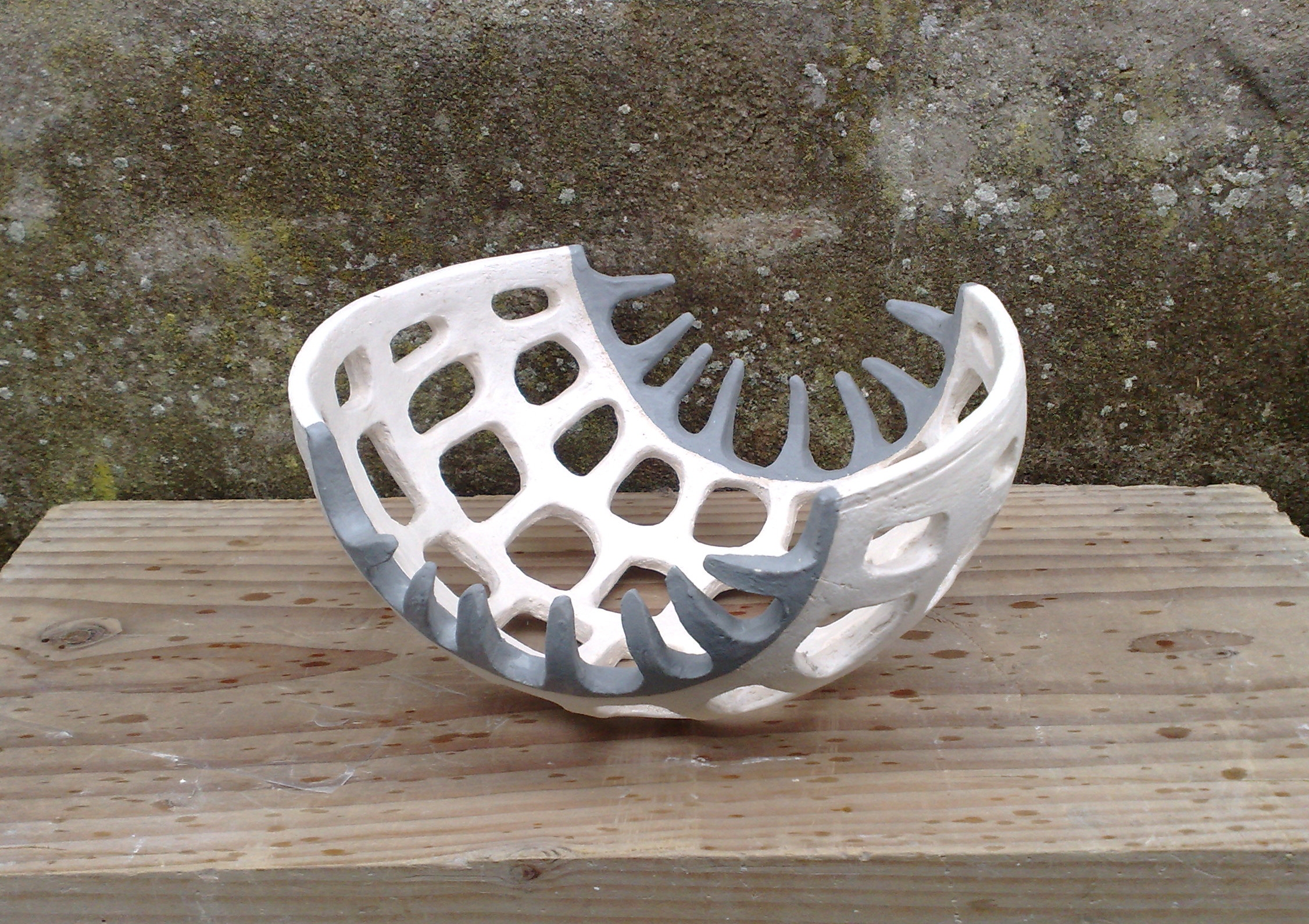 Kwetsbaarheid en vergankelijkheid staan centraal in Sandrina Kreek’s werk. Haar keramische sculpturen hebben vaak een wat rauwe uitstraling maar als dichterbij komt zie je verfijning. Sandrina wil de kijker prikkelen om dichter bij te komen en beter te kijken. Zoals met de serie “Souvenirs from Nature”, waarbij de sculpturen een fossielachtige uitstraling hebben, zo uit de aarde of de zee afkomstig lijken. Iedere keer ontdek je weer andere, soms vervreemdende details. Niets is wat het lijkt. De korstige en weerbarstige textuur maakt ieder werk spannend. De handgemaakte beelden zijn van aardewerk en steengoedklei, vaak in combinatie met PaperClay, en worden afgewerkt met samengestelde sinterengobes en glazuren. kijk op www.skeramiek.nl voor meer info.