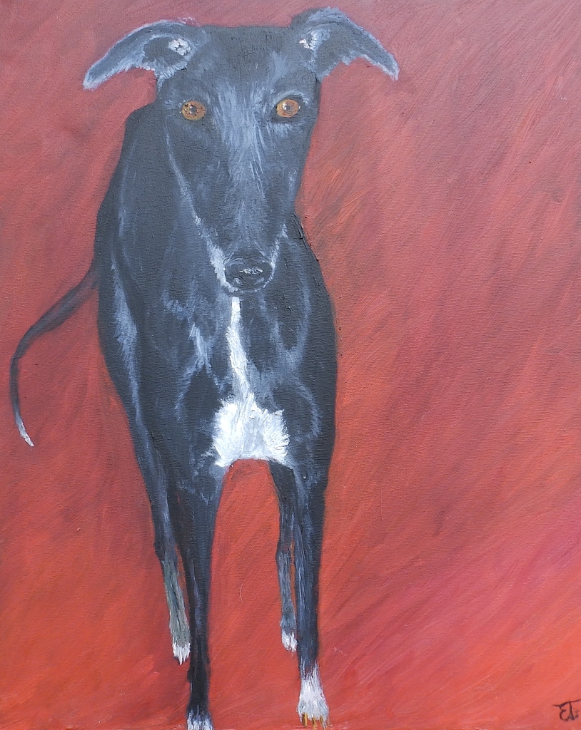 Red Black Dog Galgo Grey