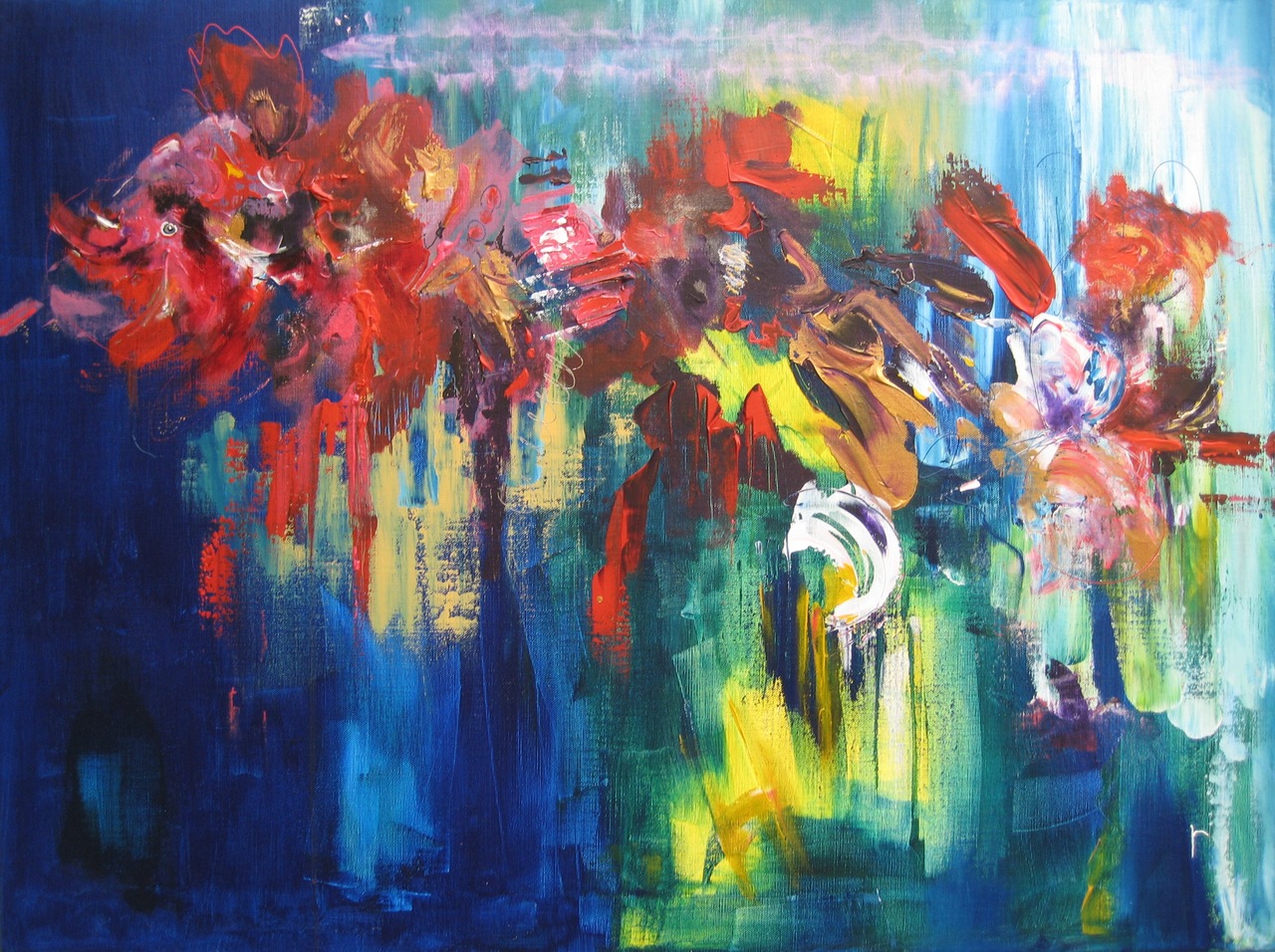 Riny Vroon schildert al vele jaren. Zij werkt zonder te schetsen, spontaan en expressief. Haar doeken prikkelen de verbeelding zodat de kijker er een eigen verhaal van kan maken. Je bespeurt plotseling een rivierbedding, een stadsgezicht of de contouren van bloemen. De harmonie van kleuren is een lust voor het oog.De thema's zijn actueel en herkenbaar voor iedereen.