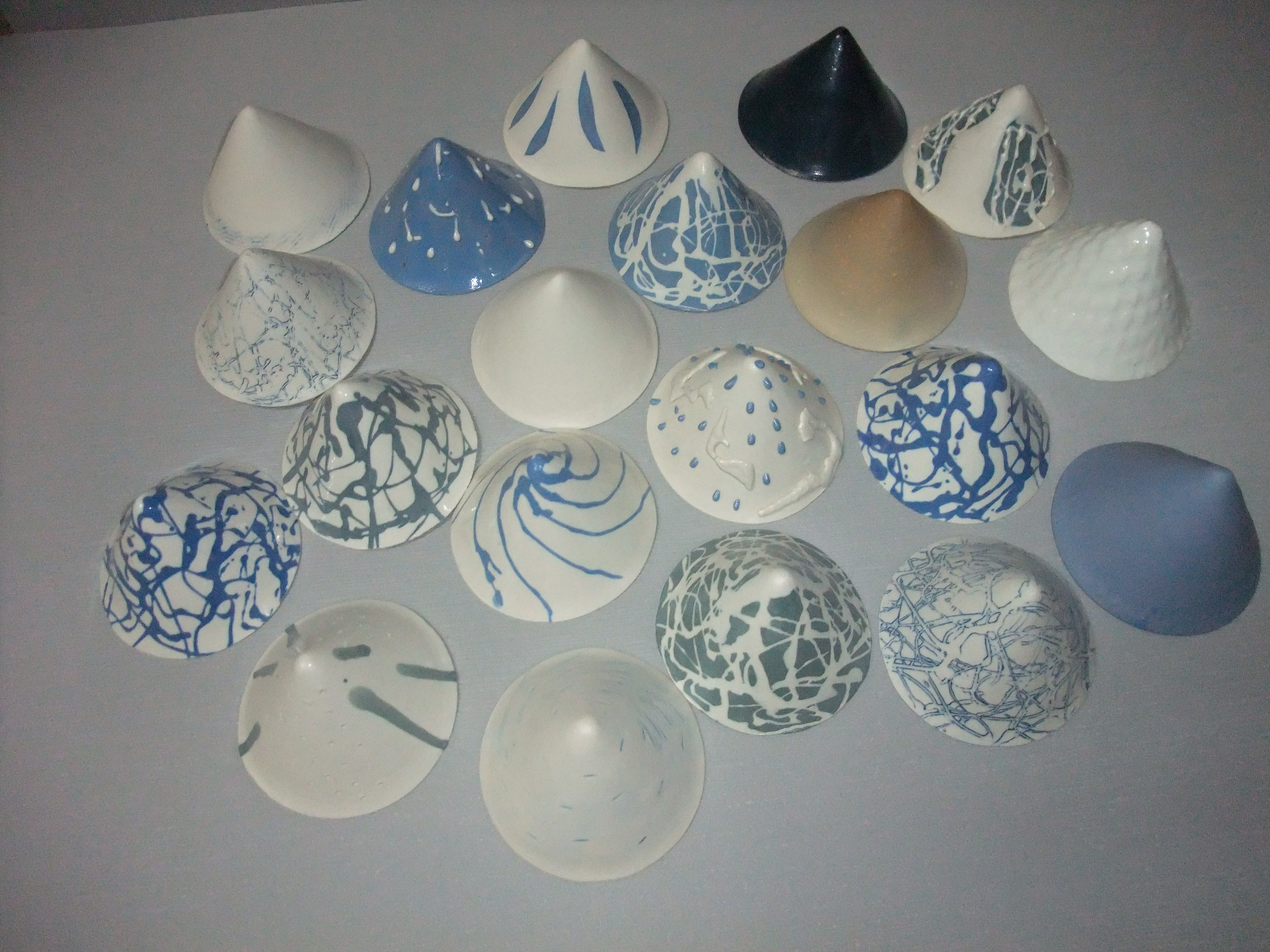 De mini-punten zijn voorzien van verschillende oxides, en deels geglazuurd.