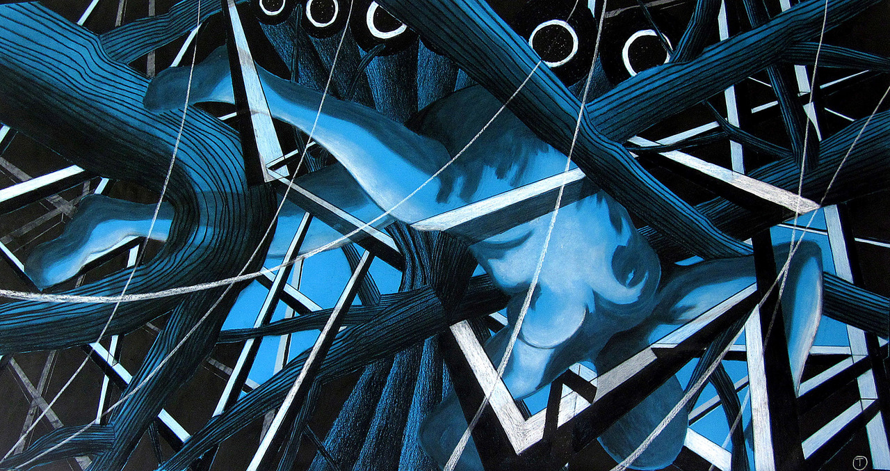 Drawing is a discipline in which ‘looking outside’ and ‘looking and moving within the frame of the paper’ is very important. Sources of inspiration are urban and industrial landscapes and shapes of the human body. Tom’s work consists of countless shades of black but he also uses colour in an exciting way. The artworks change as the daylight changes. Observations and impressions from spending time outdoors inspire his artwork. His skilled drawings may develop into new drawings as well as paintings. In his paintings he combines colour, patches and blots with lines to create several spaces.