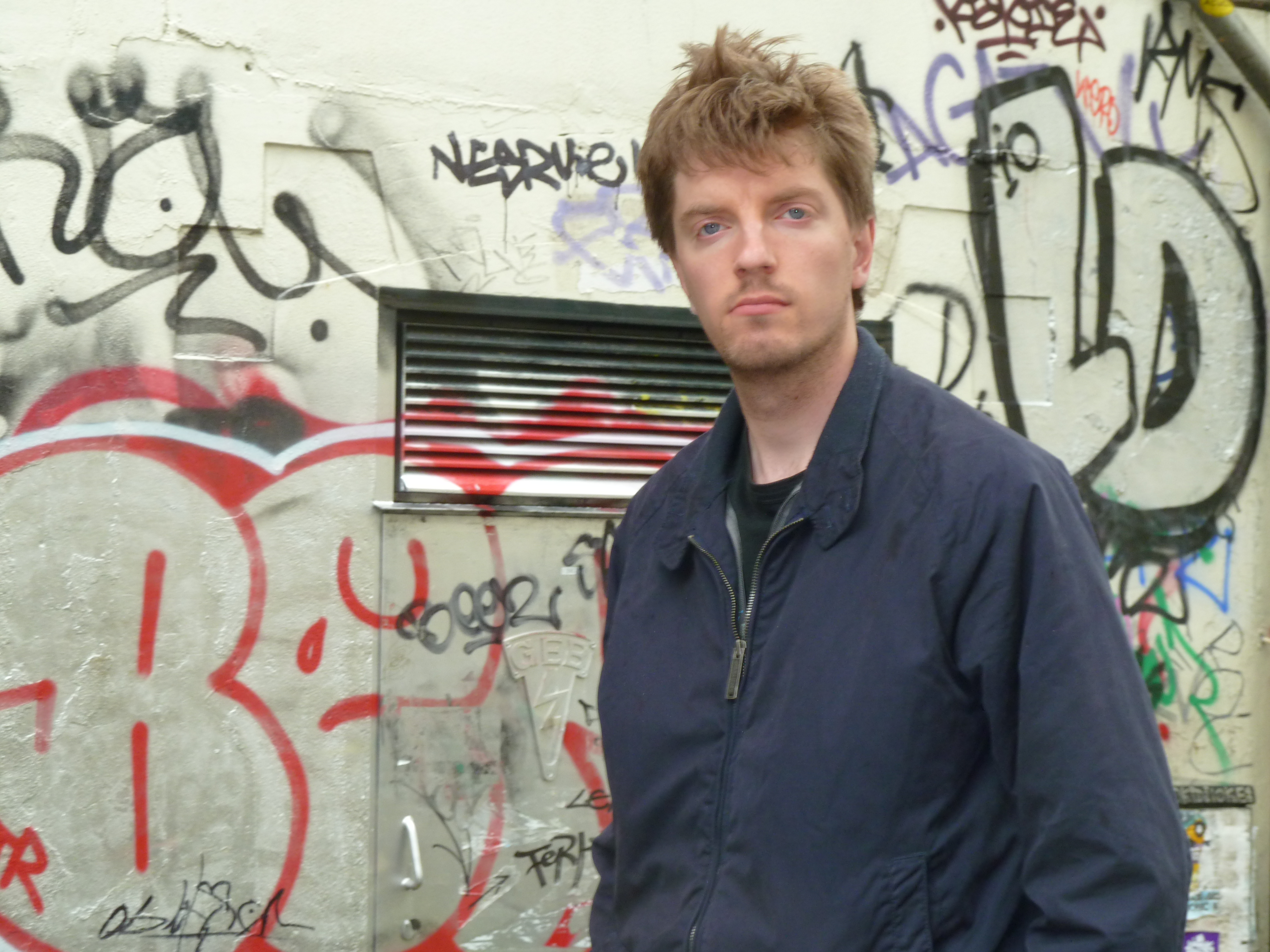 De fotograaf geportretteerd door Cisly Burcksen voor een graffitimuur in Amsterdam.