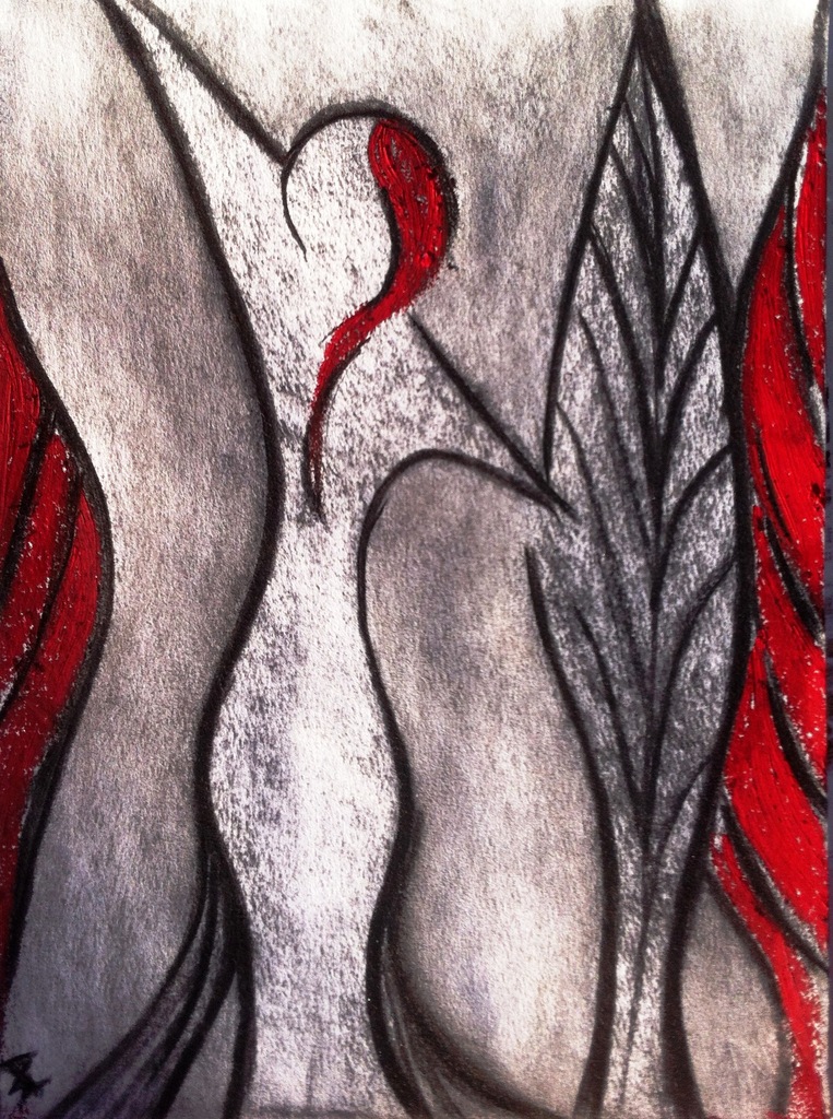 Rood Zwart Pastel Houtskool Persoon Blad/boom
