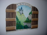 Hout Paard Raam Berg Ridder Kasteel Stenen Muurschildering Decoratie Klimop