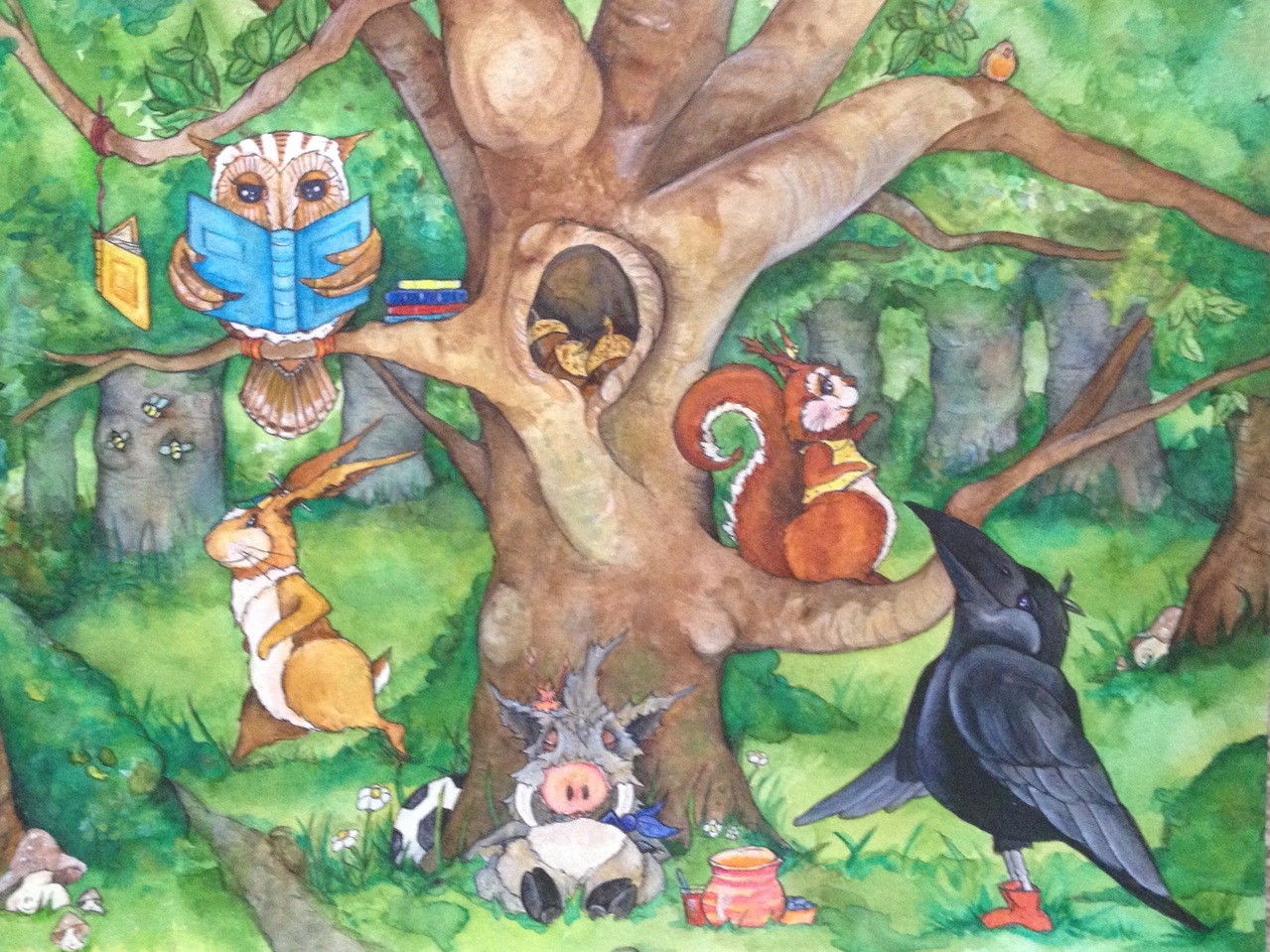 Illustratie- Regenboog- Prentenboek-dieren-bos