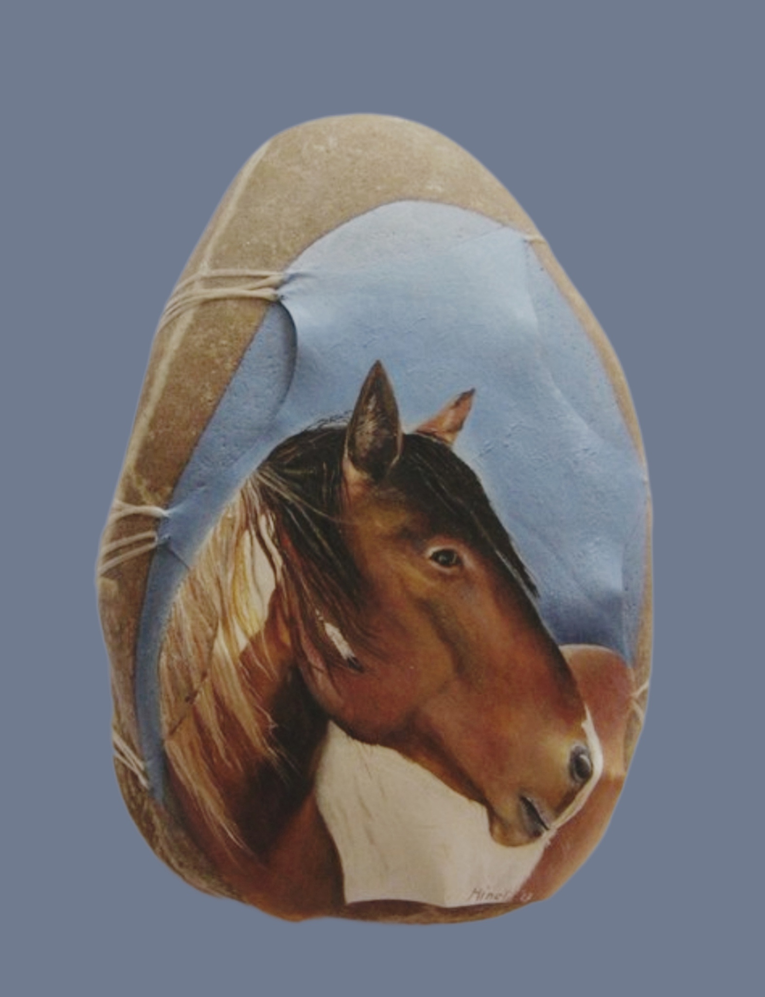 Portret Dier Steen Realistisch Olieverf Paard Beelden Stenen Fijnschilderen Leer Beschilderde Rawhide