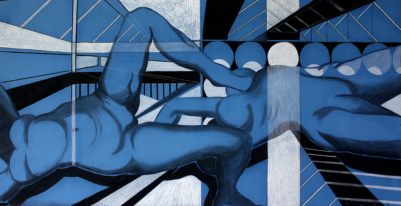 Drawing is a discipline in which ‘looking outside’ and ‘looking and moving within the frame of the paper’ is very important. Sources of inspiration are urban and industrial landscapes and shapes of the human body. Tom’s work consists of countless shades of black but he also uses colour in an exciting way. The artworks change as the daylight changes. Observations and impressions from spending time outdoors inspire his artwork. His skilled drawings may develop into new drawings as well as paintings. In his paintings he combines colour, patches and blots with lines to create several spaces.