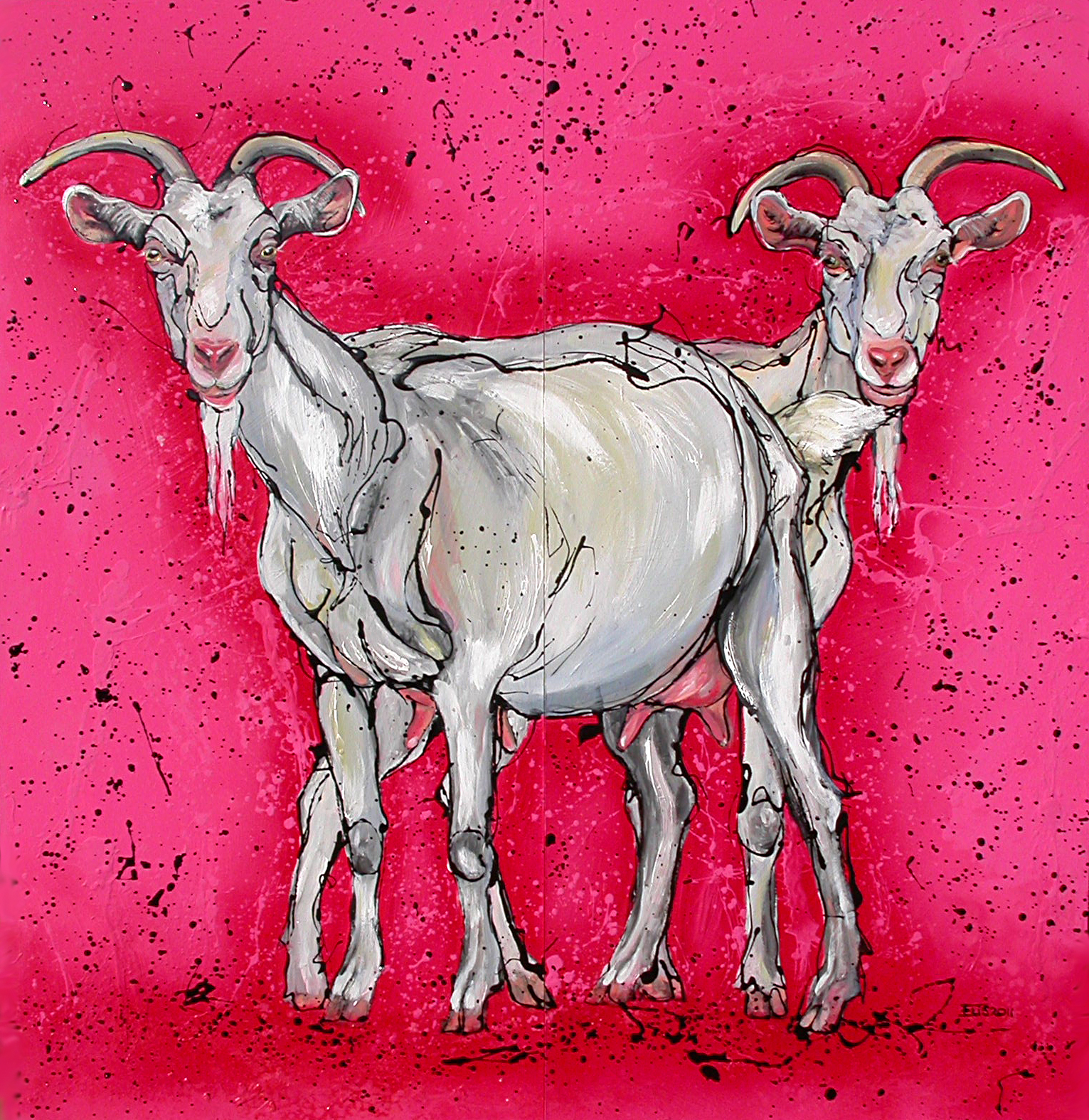 Wit Rood Dieren Red Roze White Boerderij Farm Animals Pink Geiten Erlinde Ufkes Stephanus Animalart Dierenkunst Dierenschilderijen Goats Landleven Countrylife Animalpaintings Geitenkunst Goatart