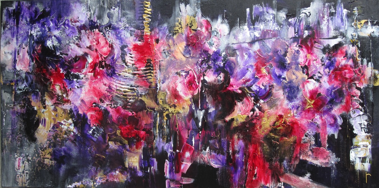 Riny Vroon schildert al vele jaren. Zij werkt zonder te schetsen, spontaan en expressief. Haar doeken prikkelen de verbeelding zodat de kijker er een eigen verhaal van kan maken. Je bespeurt plotseling een rivierbedding, een stadsgezicht of de contouren van bloemen. De harmonie van kleuren is een lust voor het oog.De thema's zijn actueel en herkenbaar voor iedereen.