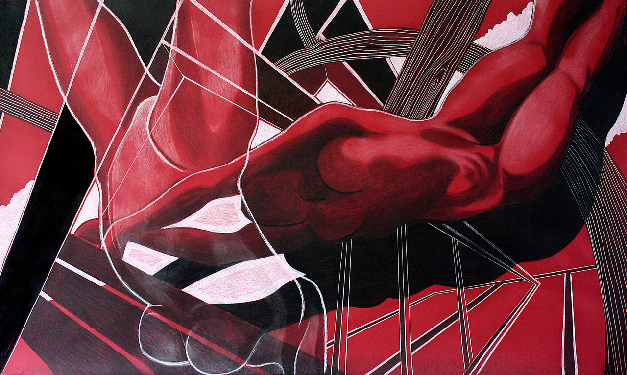 Drawing is a discipline in which ‘looking outside’ and ‘looking and moving within the frame of the paper’ is very important. Sources of inspiration are urban and industrial landscapes and shapes of the human body. Tom’s work consists of countless shades of black but he also uses colour in an exciting way. The artworks change as the daylight changes. Observations and impressions from spending time outdoors inspire his artwork. His skilled drawings may develop into new drawings as well as paintings. In his paintings he combines colour, patches and blots with lines to create several spaces.