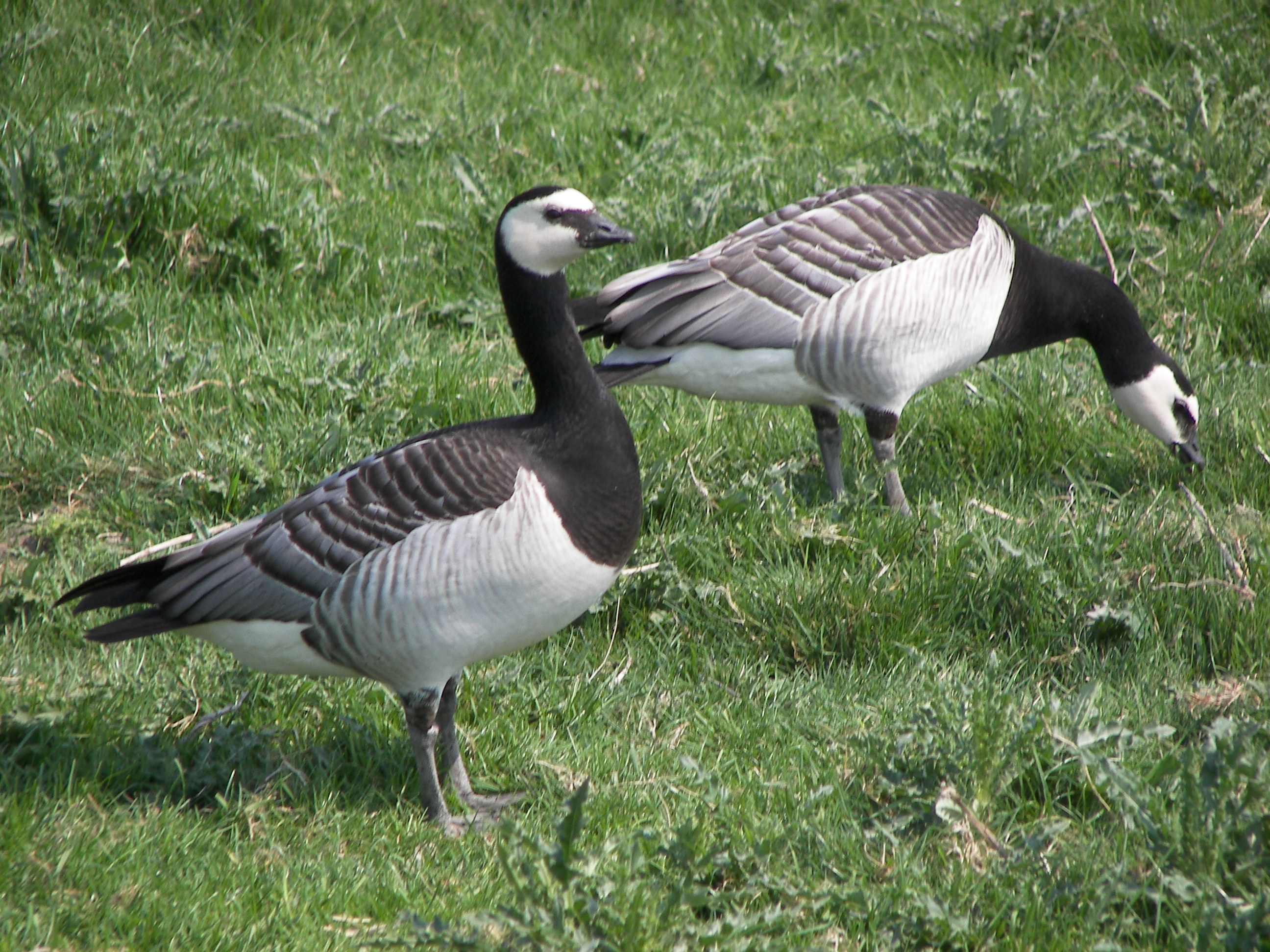 Een paar nijlganzen in een weiland. Deze zijn wel van het vrouwlijke soort.