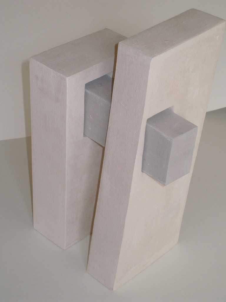 Architectural: een vorm bestaande uit twee strakke rechthoekige vormen met een opening waar een derde rechthoekige vorm doorheen wordt geschoven
