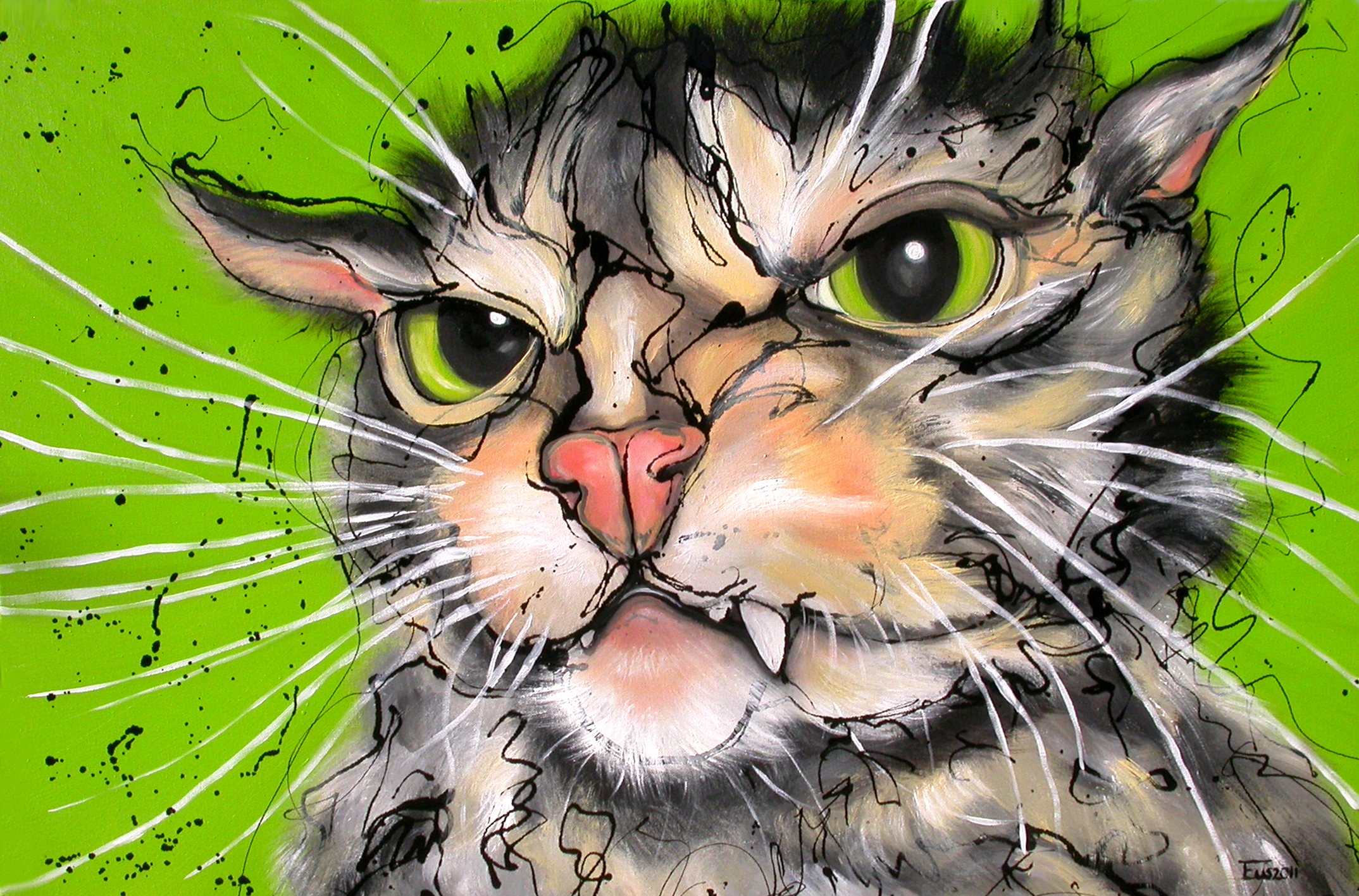 Groen Green Poes Cat Bad Boos Erlinde Ufkes Stephanus Catpaintings Boze Angry Pussy Kattenschilderijen Morningsick