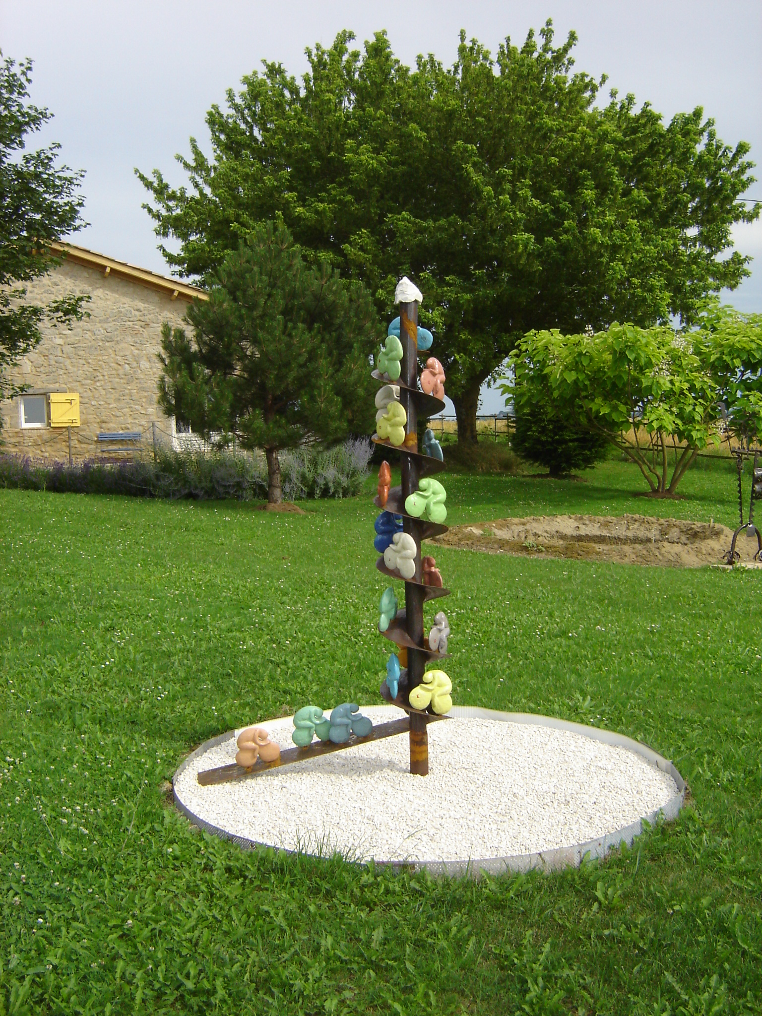 Dit werk stelt de Tour de France voor. Kleurige fietsers van geglazuurde keramiek besteigen met de nodige haarspeldbochten de Alpes d'Huez en bereiken de (sneeuw)top. Er is gebruik gemaakt van een enorme grondboor afkomstig van de Franse landbouw.