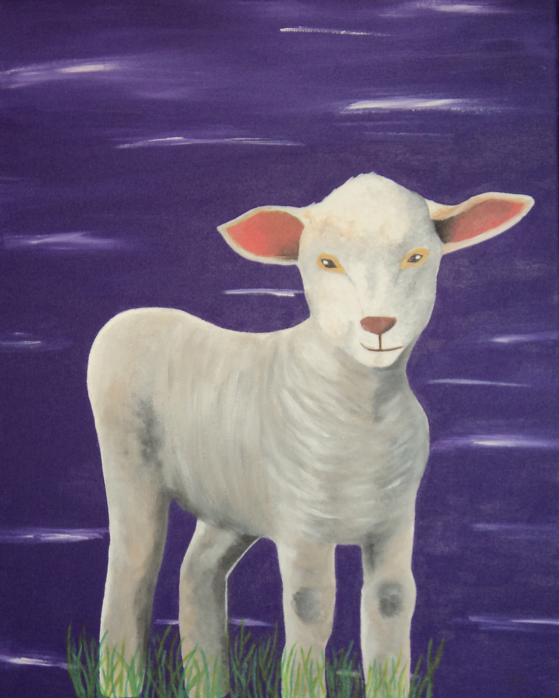 Schattig Lief Schaap Aandoenlijk Surrealistisch Grappig Gek Sheep Funny Adorable Cute Surrealistic Touching Lam Purple Paars Gras Grass Onschuldig Harmless Alone Alleen