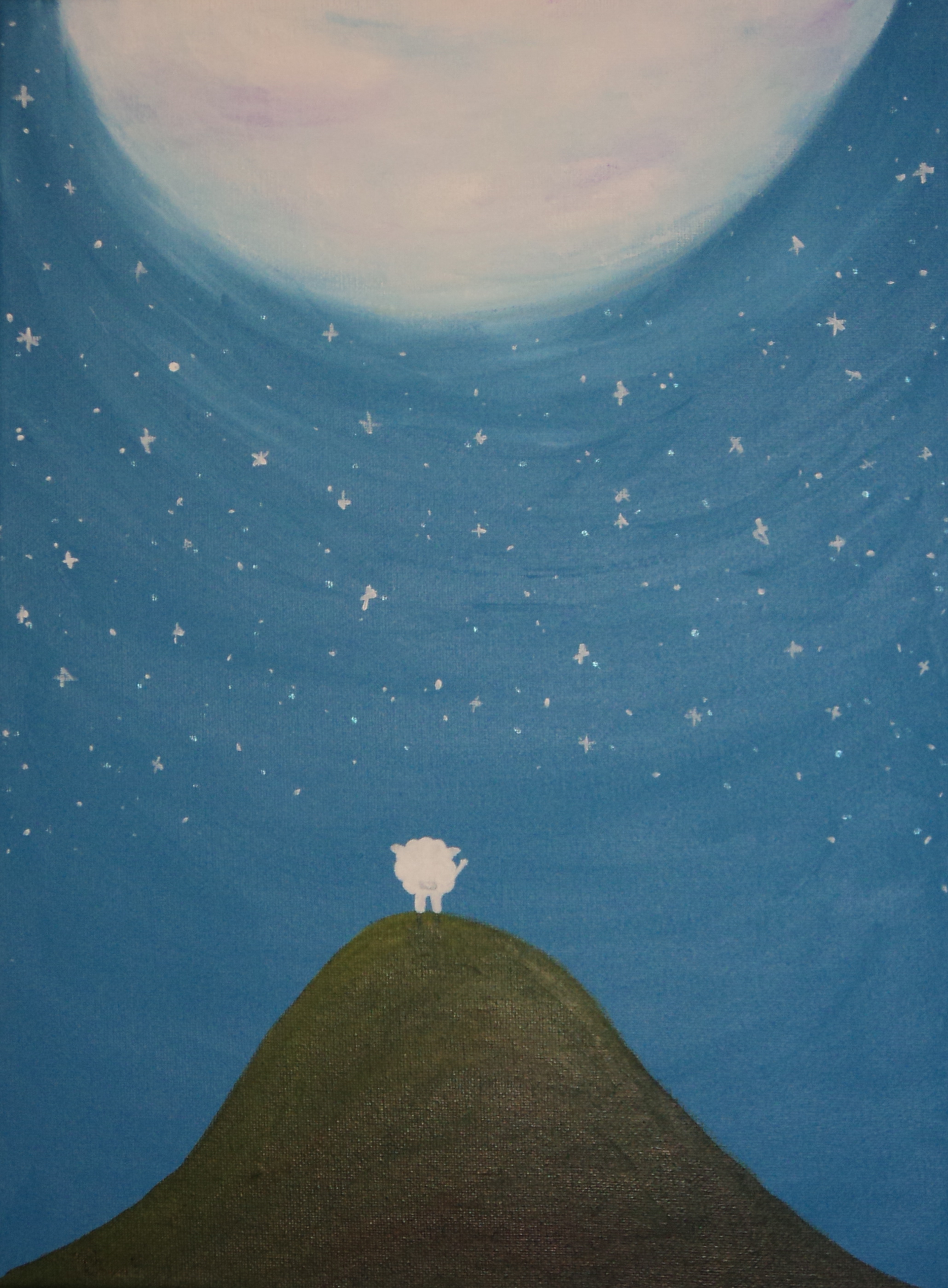 Wit Blauw Blue Maan Gek Surrealistisch White Moon Schaap Sheep Grappig Berg Sterren Lief Schattig Stars Surrealistic Mountain Funny Cute Aandoenlijk Touching Adorable