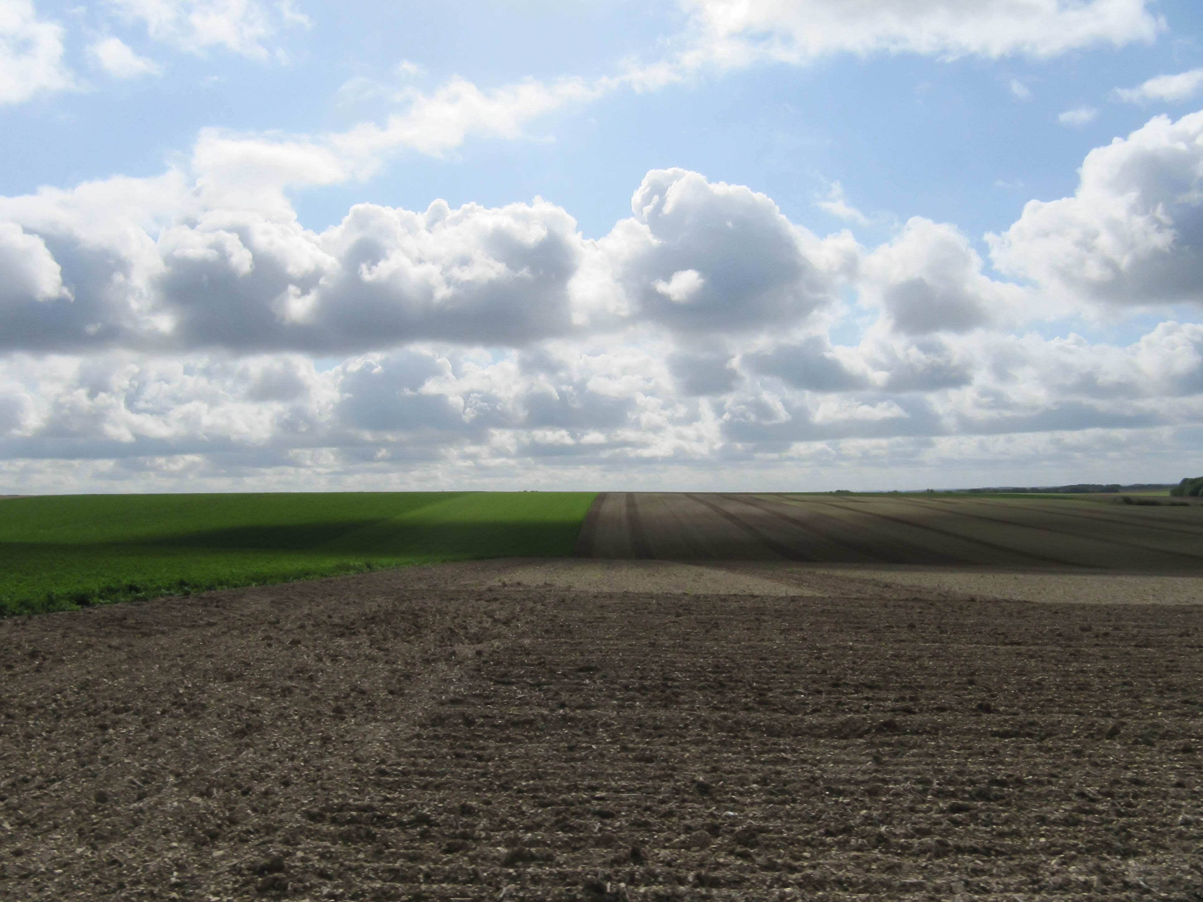 Een experiment om landschappen te fotograferen. Niet rustig en doordacht met de camera op statief, maar snel, uit de hand genomen vanuit een rijdende auto. Dus gauw een compositie maken en het landschap in kleurvlakken proberen te vangen. Ook de wolkenluchten spelen een prominente rol.