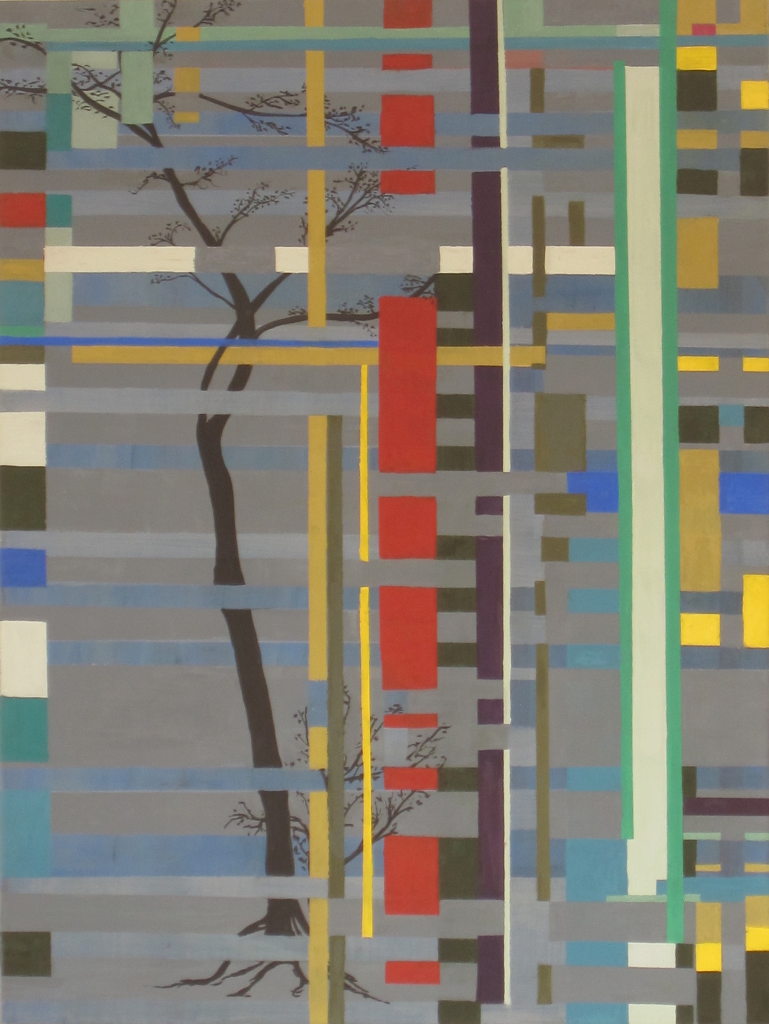 lijnen en boom in gouache op papier