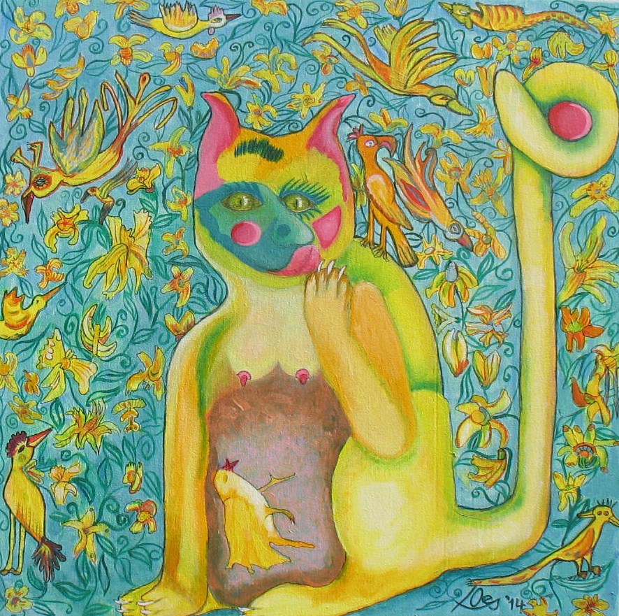 Loes is een schilder. Zij schildert meestal met acryl op canvas. Haar inspiratie haalt ze uit de natuur of uit haar hoofd dat vol zit met van alles.