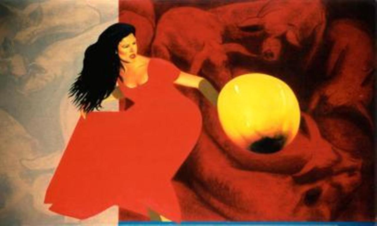 Surreeel Mensen Rood Figuratie Groen Vrouw Portret Man Art Media Woman Object Kunst Oilpainting Portrait Olieverfschilderij Red Appel Green Vervreemding Gekleed Surrealisme Realisme Realism Paint
