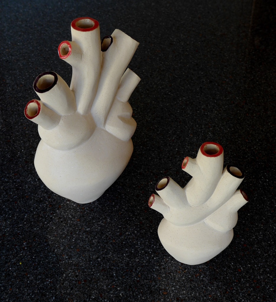 Relatie tussen cultuur en natuur. In mijn werk als beeldend kunstenaar onderzoek ik de relatie tussen natuur en cultuur. Onze gecultiveerde wereld symboliseer ik met kubus en rechthoek vormen. Deze zet ik in contrast met het grillige en chaotische van de natuur. Is er een winnaar? Waar zit de strijd? Waar ontstaat er harmonie? met klei verbeeld ik dit in 3-d objecten. Ook combineer ik klei vaak met andere materialen zoals hout en ijzer. Hanneke Windhausen