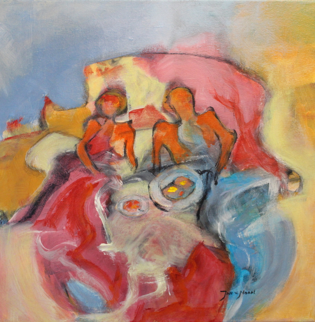 De inspiratiebron voor mijn werk zijn herinneringen en de dagelijkse dingen om mij heen. Een uitbundig kleurenpalet en werken op grotere formaten hebben mijn voorkeur. Tijdens het schilderen ontwikkelt zich, door een spel met kleurvlakken en lijnen, een beeldverhaal met geabstraheerde vormen. Het geschilderde resultaat is een vertaling van wat ik zag en voelde. Het schilderen is een avontuur.