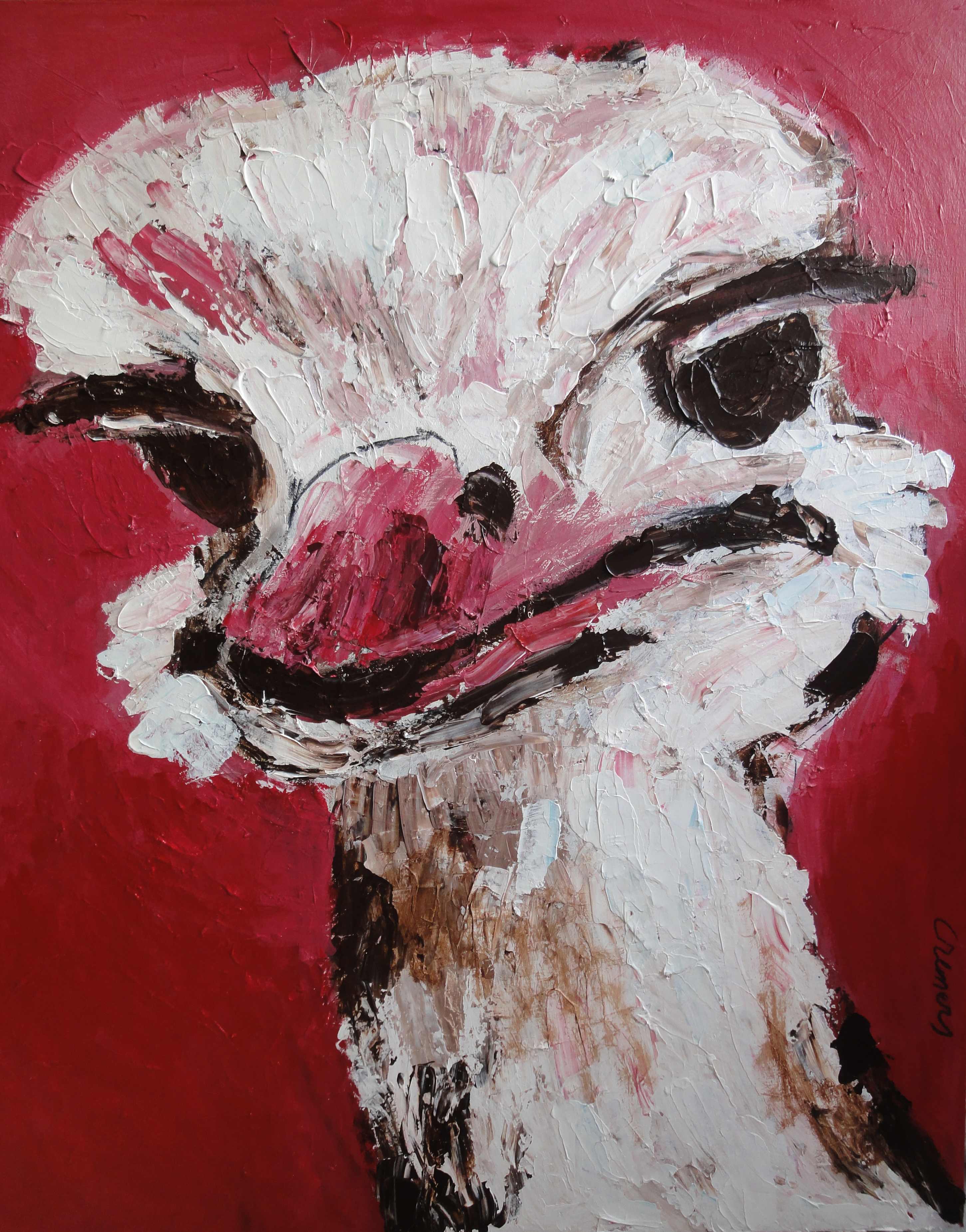 Wit Rood Acryl Expressief Bruin Canvas Dier Doek Red Houtskool White Brown Expressive Paletmes Struisvogel Animal Dierentuin Zoo Penseel Ostrich