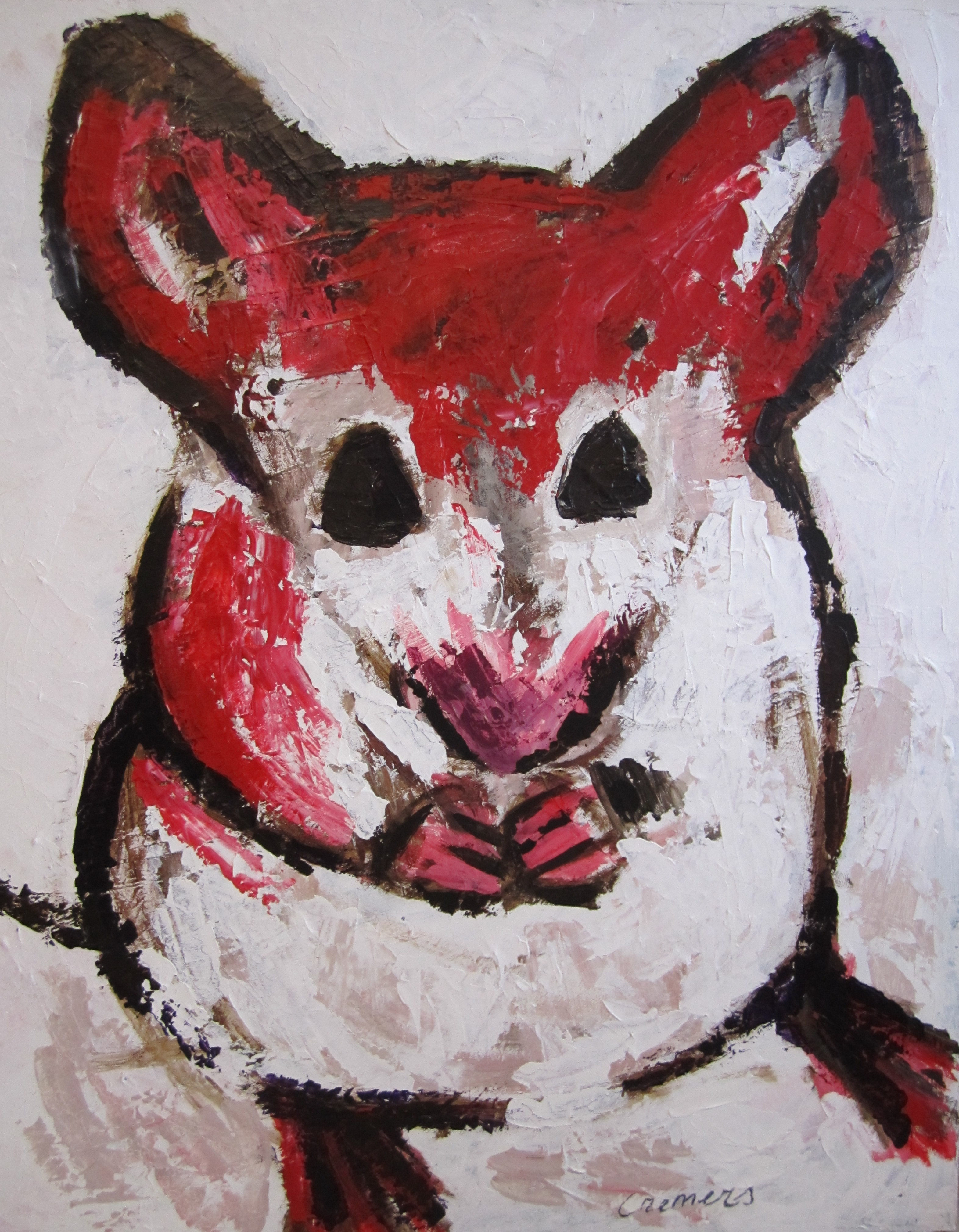 Wit Rood Acryl Kind Dier Doek Red White Painted Animal Mouse Pensel Naif
