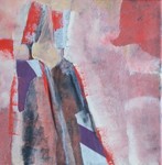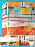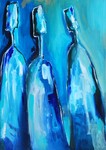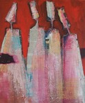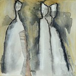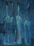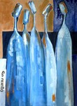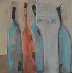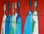 De techniek waar ik mij het meest vrij in voel is een combinatie van acrylschilderen en de collage techniek. Eindeloos experimenteren met vorm, kleur en emotie. De flessen worden steeds meer figuratief en drukken ieder een eigen emotie uit. Het gaat vooral om de interactie tussen de flessen/figuren. Eenzaamheid, hunkering naar 'erbij horen', uitsluiting, groepsvorming; allemaal emoties die mij fascineren.