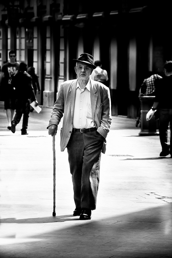 Z/w B/w Man Walking Stick Wandelstok Hoed Hat Street Straat Streetphotography Straatfotografie