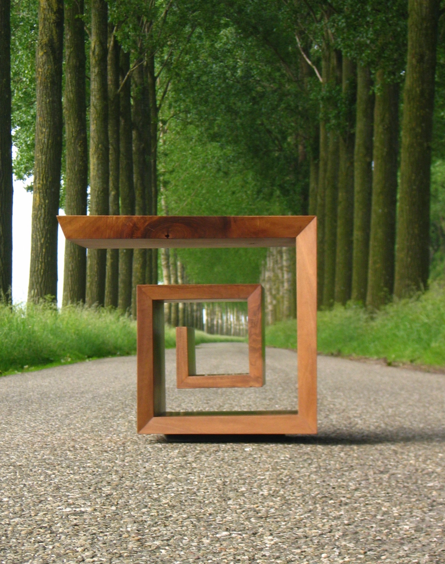 Notenhout Tafel Stoel Bijzettafel Spiraal