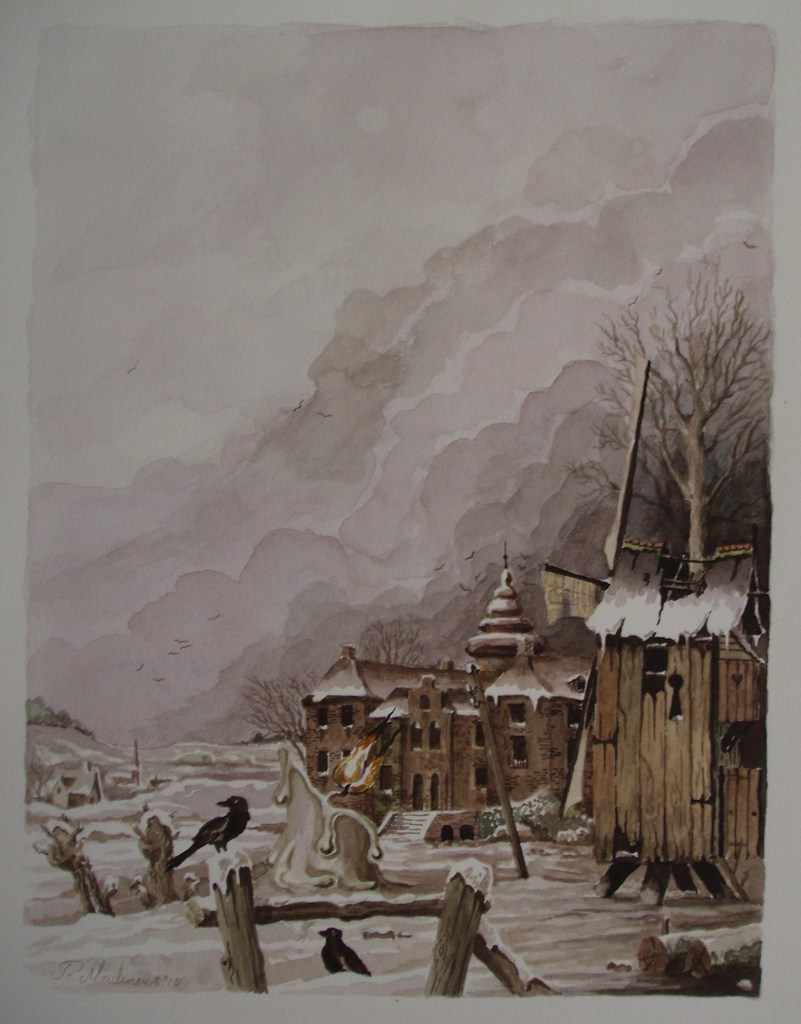 Winterlandschap met kasteel Neubourg Limburg.