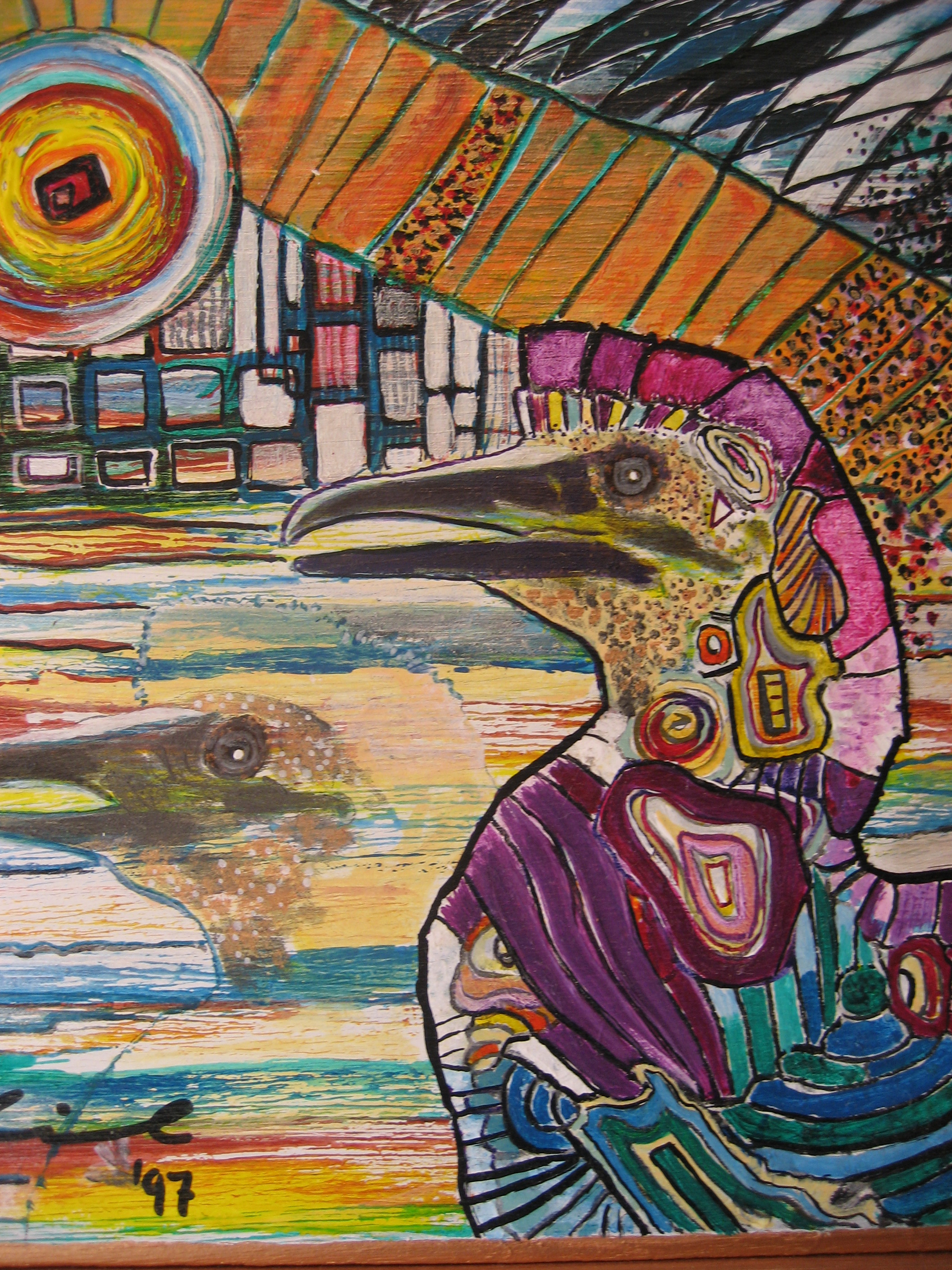 'Beweging, herhaling, verstilling', daarin zou je mijn werk kunnen vangen. Een tijdlang wordt een thema (vissen, huizen, bomen, dansende schoenen en voetafdrukken en het onderwerp: "kwetsbaar: de mens") uitgediept, weer losgelaten om vervolgens in een nieuwe verwerking tevoorschijn te komen. Altijd speelt de paradox van alleen te zijn en in communiteit. Eenheid van tegenstellingen, daar gaat het blijkbaar om. Mijn werk toont een vloeiende synthese tussen figuratie en abstractie. Ik bevind me meestal in het grensgebied van beide. Vandaar mijn beschrijving: VRIJE FIGURATIE.