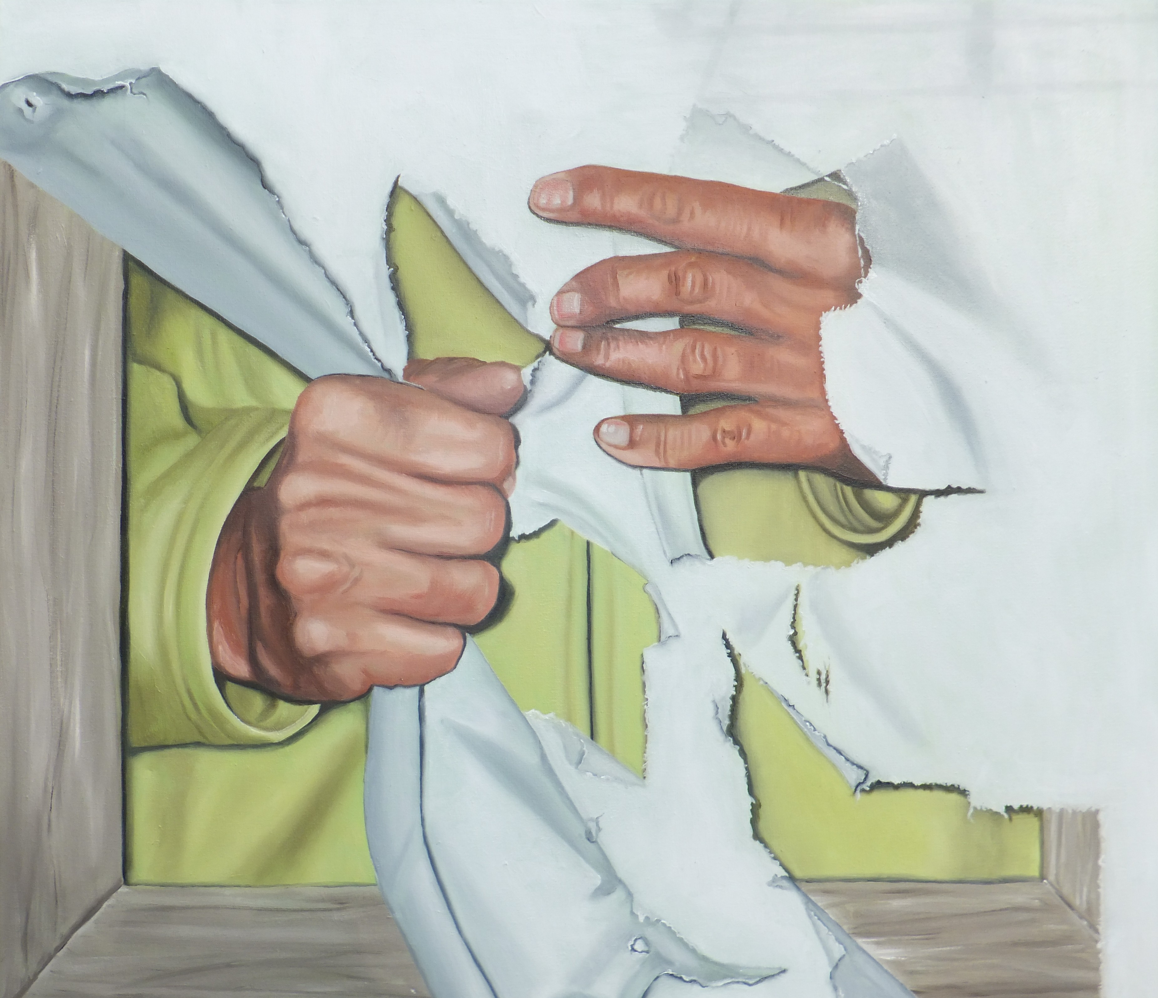 Het werk is ontstaan uit frustratie na een maanden lang durende schildersblock
