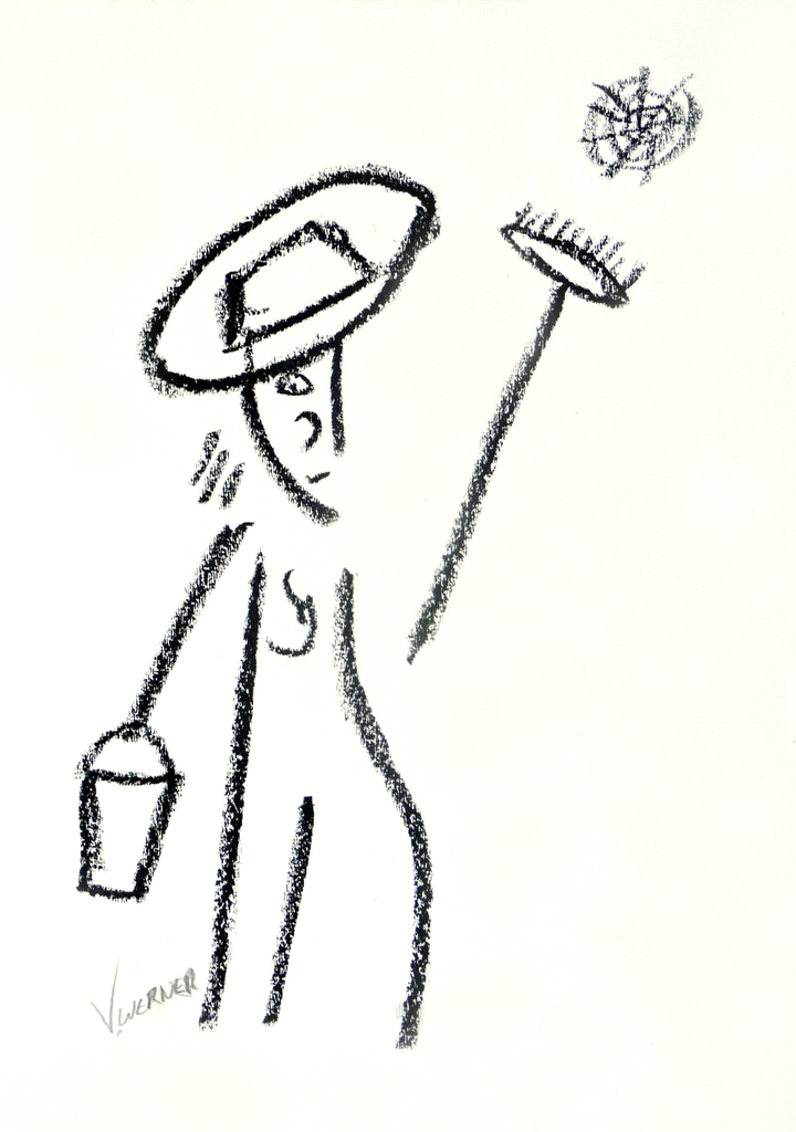 SCHOONMAKER - tekening in zwart wit krijt; te koop